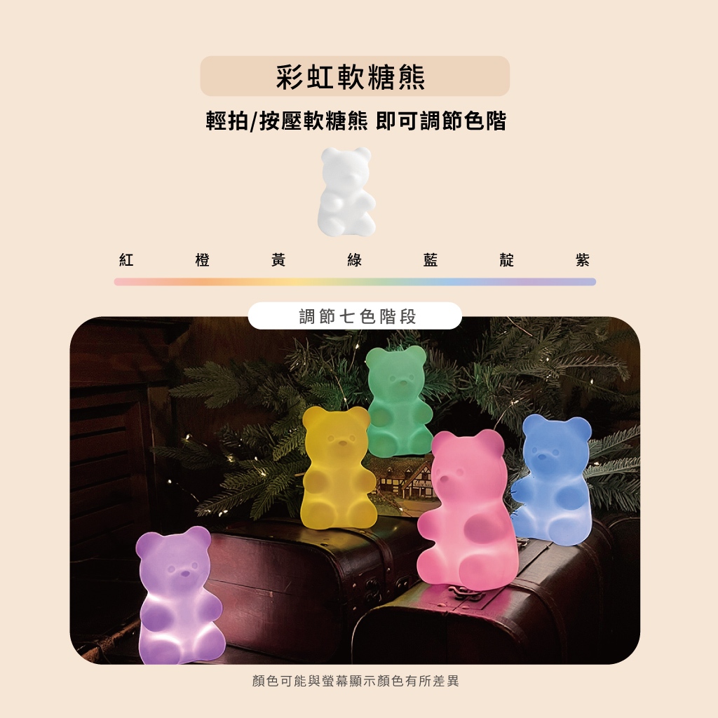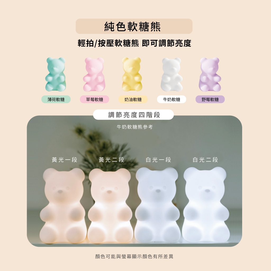 【韓國進口 Jellygom】小熊軟糖心情燈 Mood light 床頭燈 造型燈 拍拍燈 療癒系小夜燈 軟Q紓壓好心情奶油軟糖熊-黃|草莓軟糖熊-粉|彩虹軟糖熊-七色燈-陳列品 功能正常|牛奶軟糖熊-白|薄荷軟糖熊-綠|野莓軟糖熊-紫FUNY台灣官方旗艦店
