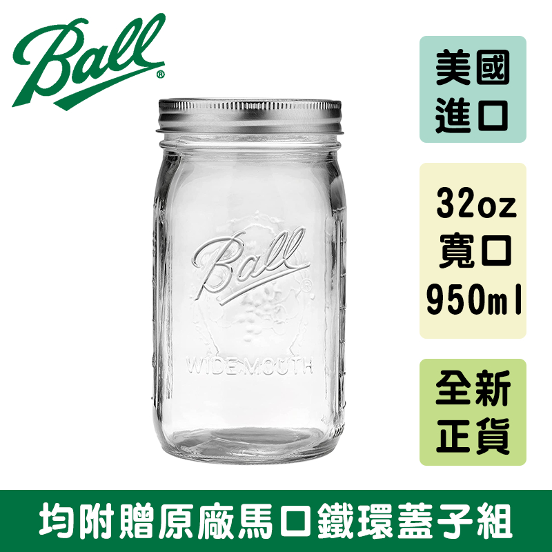 Ball® 32oz 寬口 Quart Glass Wide Mouth Mason Jar 梅森罐 玻璃瓶 密封罐Ball® 32oz 寬口 Quart Glass Wide Mouth Mason Jar 梅森罐 玻璃瓶 密封罐Food StorageGAPL 激安殿堂旗艦店