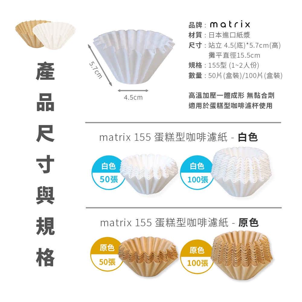 Matrix 155蛋糕型咖啡濾紙OREA/Kalita/Tiamo/Timemore-濾紙/咖啡濾紙/手沖咖啡Matrix185蛋糕濾紙原色(50入)|Matrix185蛋糕濾紙白色(50入)|HARIO V60白色濾紙01-100張|泰摩 V型01號(漂白)(100片)|泰摩 V型02號(漂白)(100片)|HARIO V60白色濾紙02-100張|HARIO V60原色濾紙02-110張|Kalita專用蛋糕濾紙(50入)|Kalita專用蛋糕濾紙(50入)*3|Matrix155蛋糕濾紙原色(50入)|Matrix155蛋糕濾紙原色(100)|HARIO V60原色濾紙02-100張|HARIO V60白色濾紙02-110張|Matrix155蛋糕濾紙白色(50入)|HARIO V60白色濾紙01-110張|HARIO V60原色濾紙01-110張|Kalita專用蛋糕濾紙(50入)*2|Matrix155蛋糕濾紙白色(100)|MatrixV型白色02-100張|MatrixV型原色02-100張Tea, Coffee & Bartending EquipmentsGOATSTORY咖啡生活館