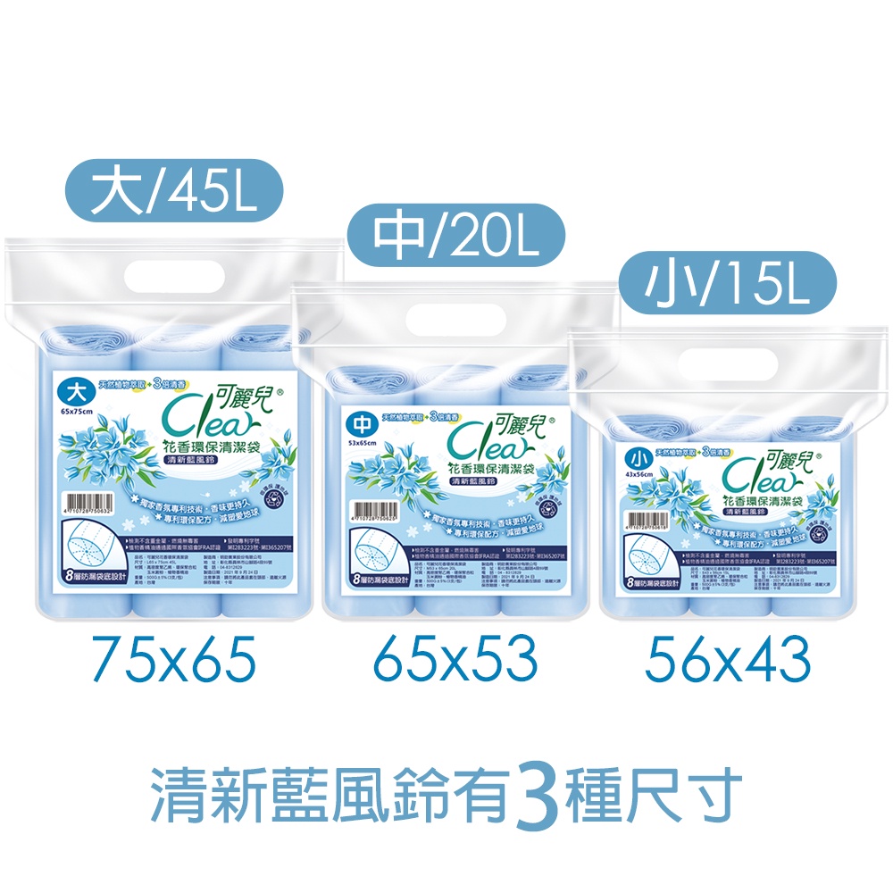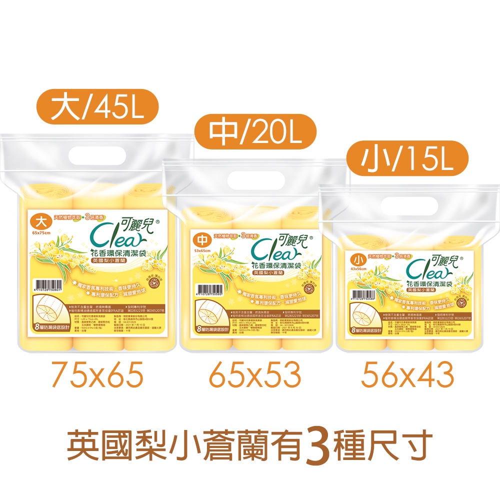 Clear可麗兒花香環保垃圾袋 3支/袋 大中小三款/2種香味可選英國梨小蒼蘭,中(65×53)-20L|英國梨小蒼蘭,小(56×43)-15L|清新藍風鈴,大(75×65)-45L|清新藍風鈴,中(65×53)-20L|清新藍風鈴,小(56×43)-15L|英國梨小蒼蘭,大(75×65)-45LPlastic Bags & Trash BagsGood Go 好好買