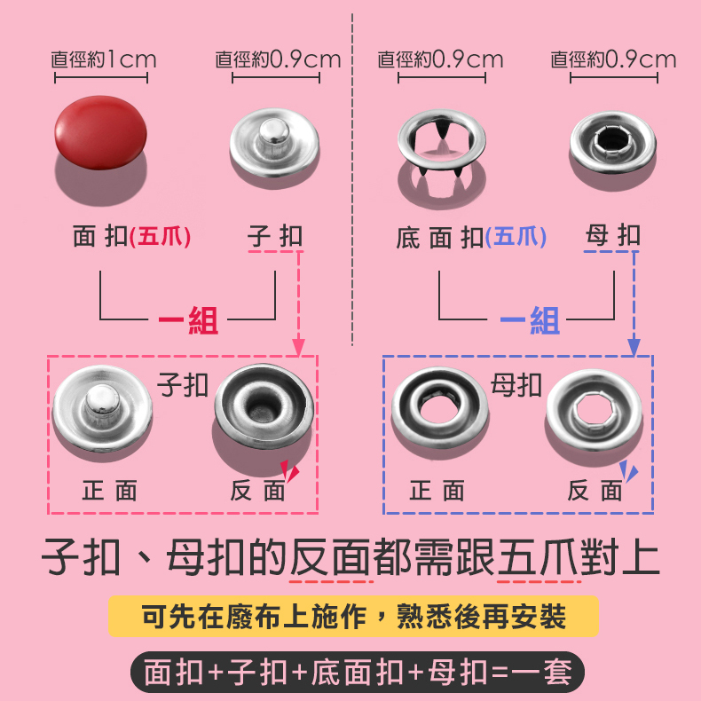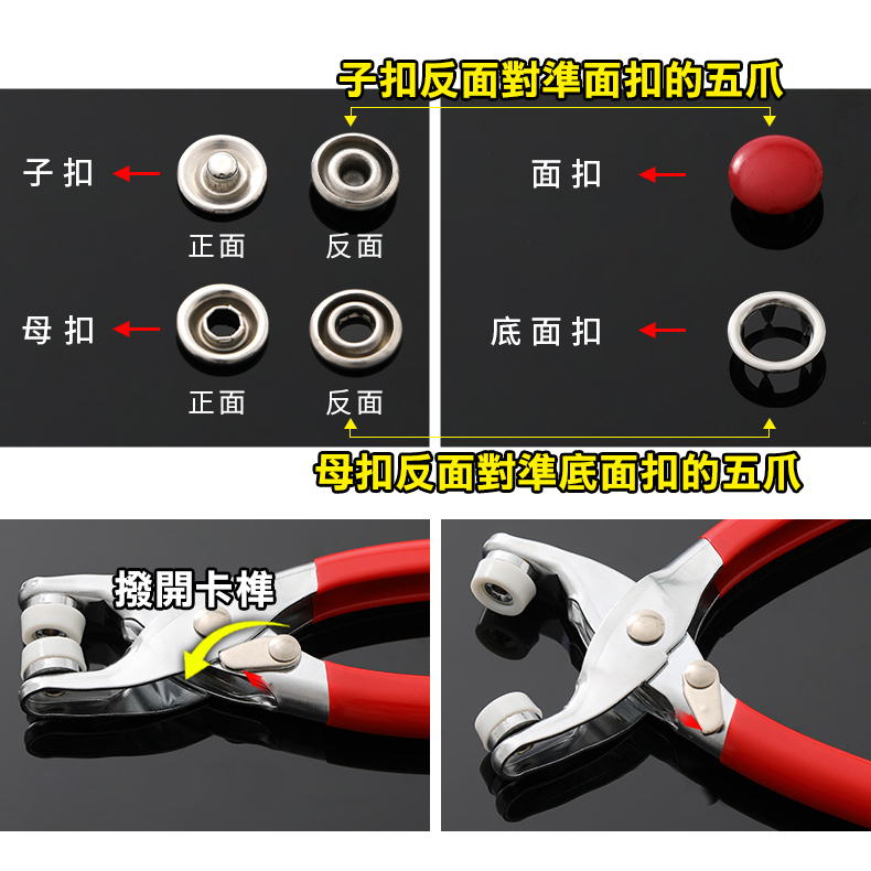 免縫按扣組 QGF814 附鈕扣鉗 免縫DIY五爪子母鈕扣 五爪扣 按扣 扣子 免縫釘扣 暗扣本色|彩色空心|彩色實心ToolsGood Go 好好買