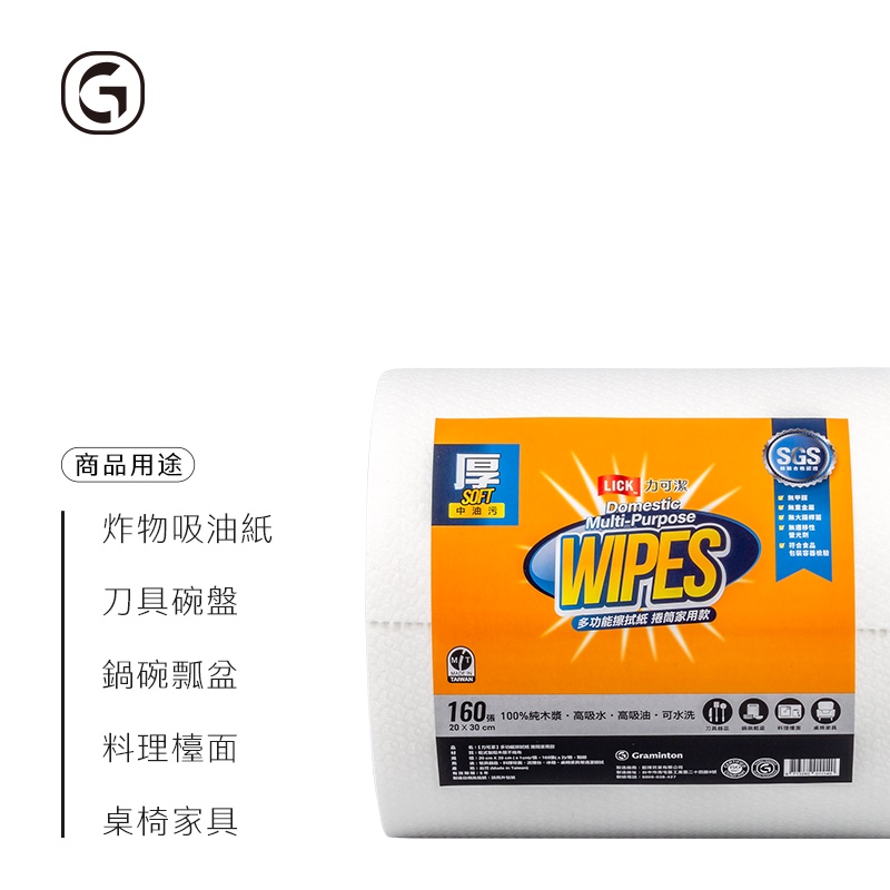 力可潔 LICK【多功能擦拭紙-家用款(無紙捲架)L7101】(160張/捲) 鉅瑋 萬用紙抹布 拋棄式 一次性 紙抹布【無架】160張/捲Tissue & Paper TowelsGShop|鉅瑋官方直營店