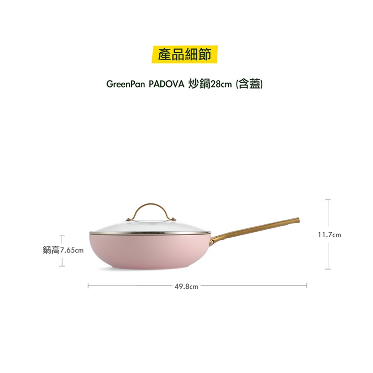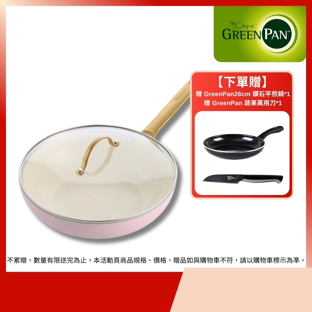 GreenPan 鑽石陶瓷塗層不沾炒鍋 PADOVA 28cm 嫩頰粉 含蓋 不挑爐具/IH爐適用/天然無毒【單件】炒鍋28cm(含蓋)(嫩頰粉)|【限時特賣】PansGreenPan 官方旗艦店