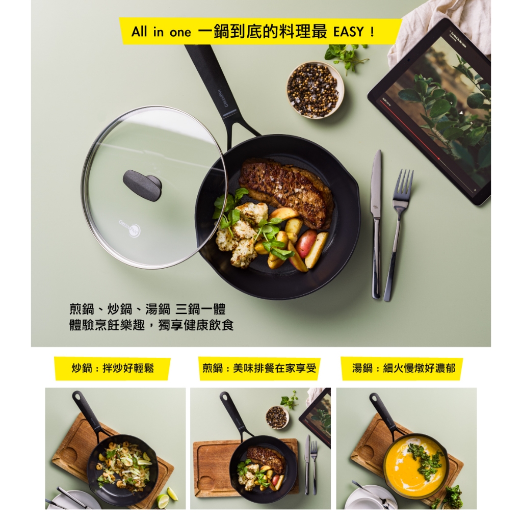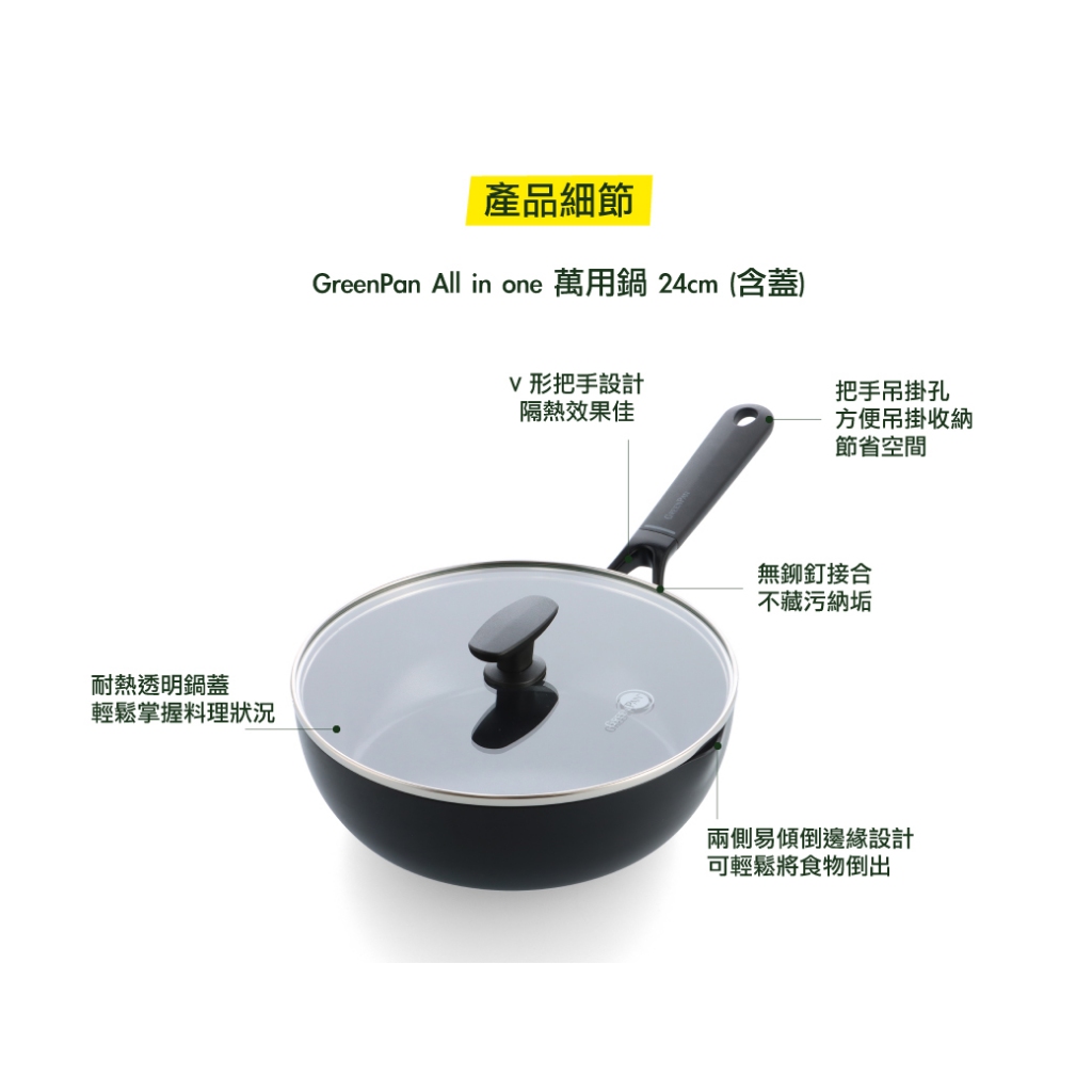 GreenPan 鑽石陶瓷塗層不沾萬用鍋 All-in-one 24cm 含蓋【新品上市】不挑爐具/IH爐適用/天然無毒【單件】萬用鍋24cm (含蓋)PansGreenPan 官方旗艦店