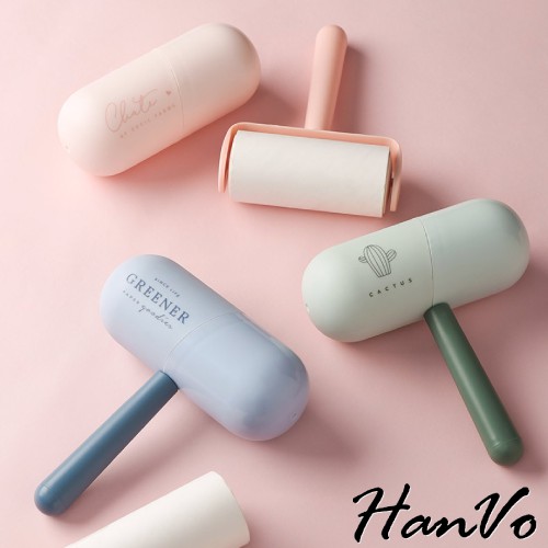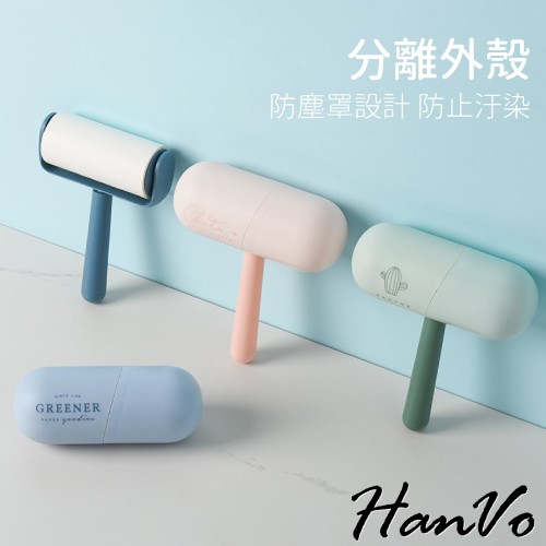 【HanVo】膠囊造型滾筒黏毛器 現貨斜撕環保除塵滾輪黏塵紙塵器清毛器補充包紙捲捲芯 生活居家掃除用品 C07-1013