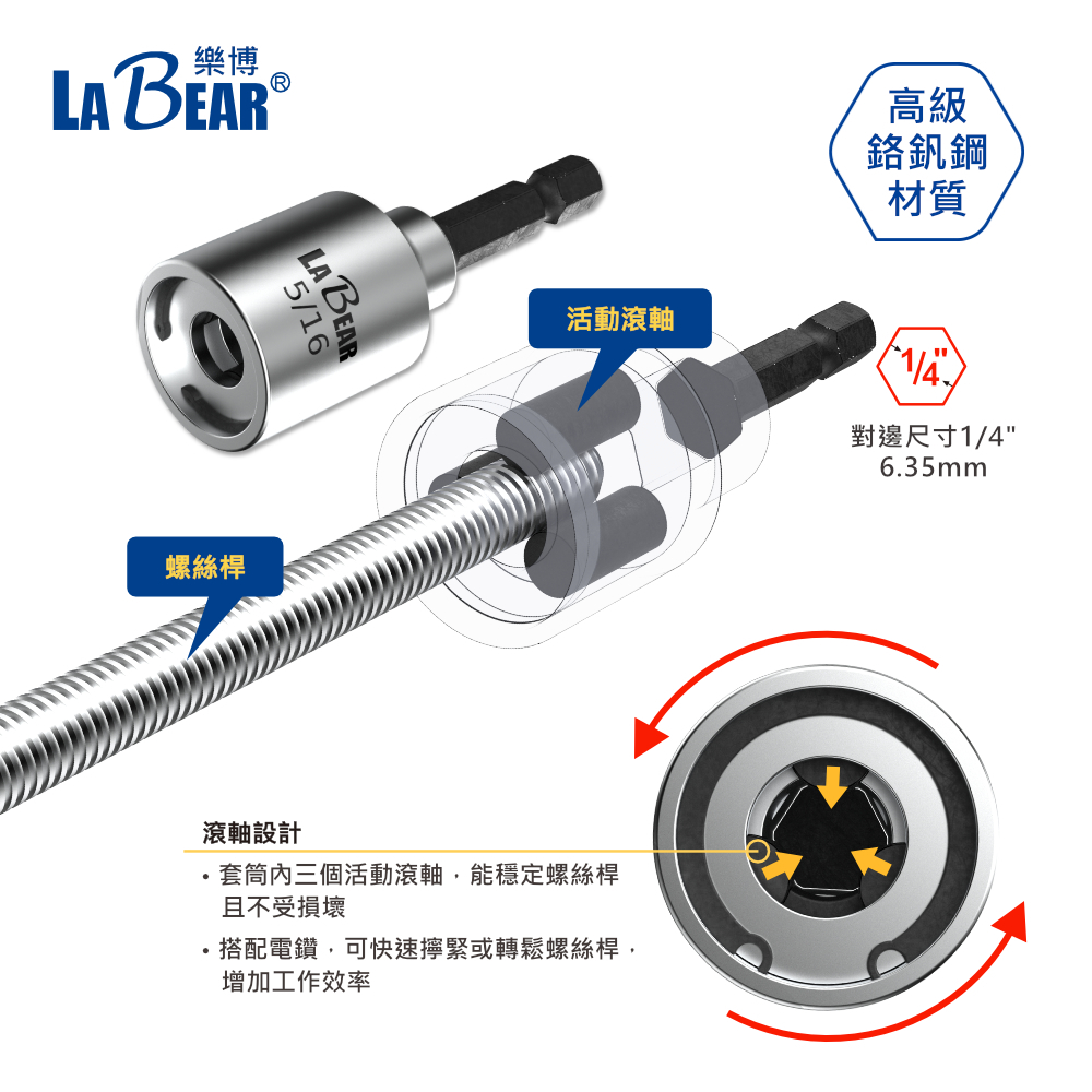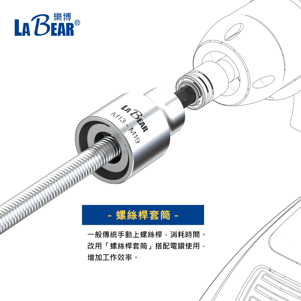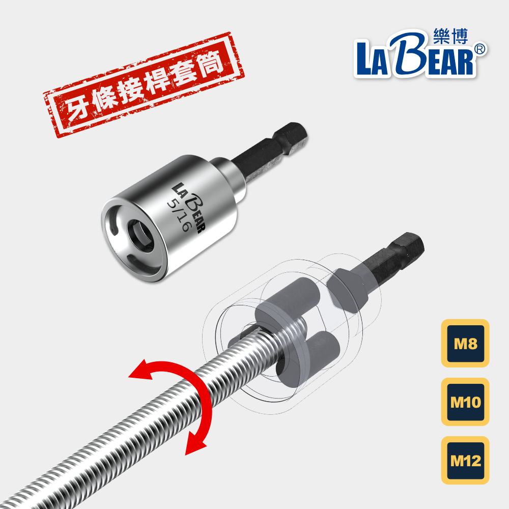 【LaBear】螺桿套筒 牙條接桿套筒 M8/M10/M12 3/8″ 5/16″ 1/2″ 牙條套筒 螺桿套筒M8 (5/16″)|M10 (3/8″)|M12(1/2″)ToolsLaBear 樂博工具