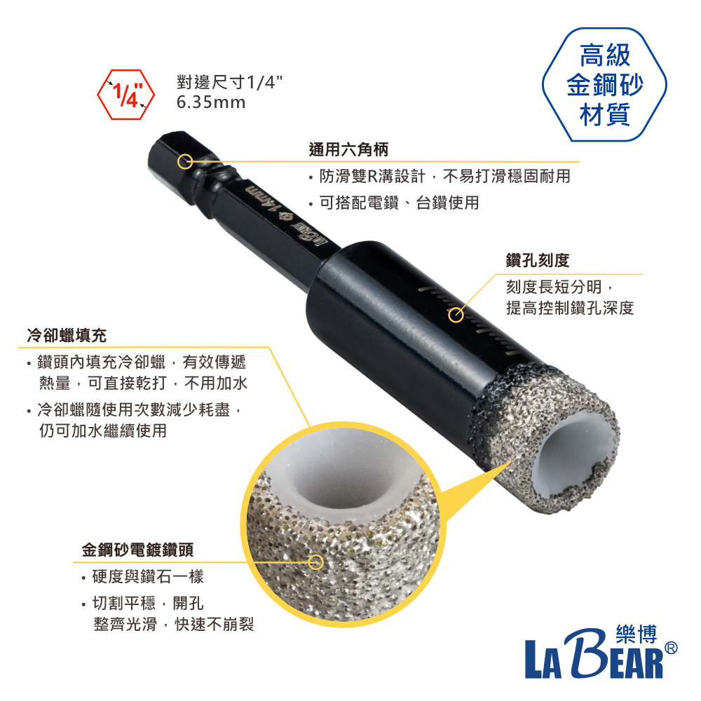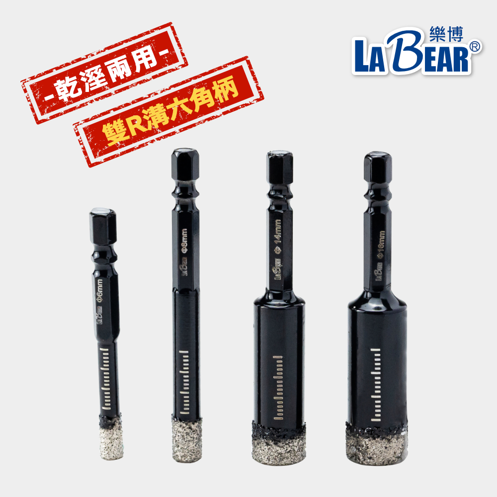 【LaBear】乾濕兩用 玻璃磁磚開孔鑽 冷卻蠟鑽尾 5-16mm 雙R溝六角柄 金鋼砂鑽頭 鑽石開孔鑽頭 玻璃陶瓷打洞黑-冷卻蠟開孔鑽 6mm(六角柄)|黑-冷卻蠟開孔鑽 8mm(六角柄)|黑-冷卻蠟開孔鑽 10mm(六角柄)|黑-冷卻蠟開孔鑽 12mm(六角柄)|黑-冷卻蠟開孔鑽 14mm(六角柄)|黑-冷卻蠟開孔鑽 16mm(六角柄)|黑-冷卻蠟開孔鑽 5mm(六角柄)|黑-冷卻蠟開孔鑽 6.5mm(六角柄)|黑-冷卻蠟開孔鑽 9.5mm(六角柄)|黑-冷卻蠟開孔鑽 12.7mm(六角柄)ToolsLaBear 樂博工具