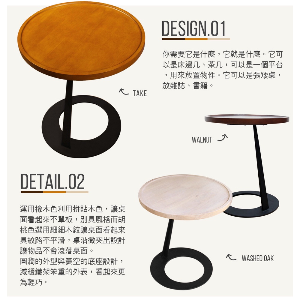 【H&D東稻家居】勞倫斯簡約圓茶几/邊几-2色【TK1X/TK1R】胡桃|橡木Desks & TablesH&D東稻家居