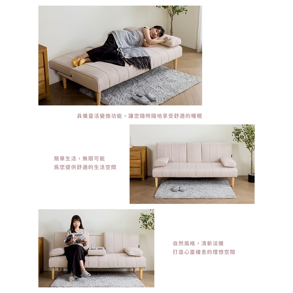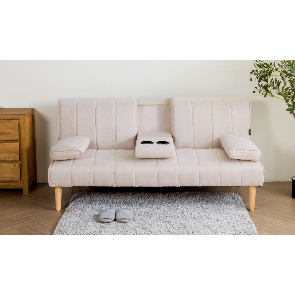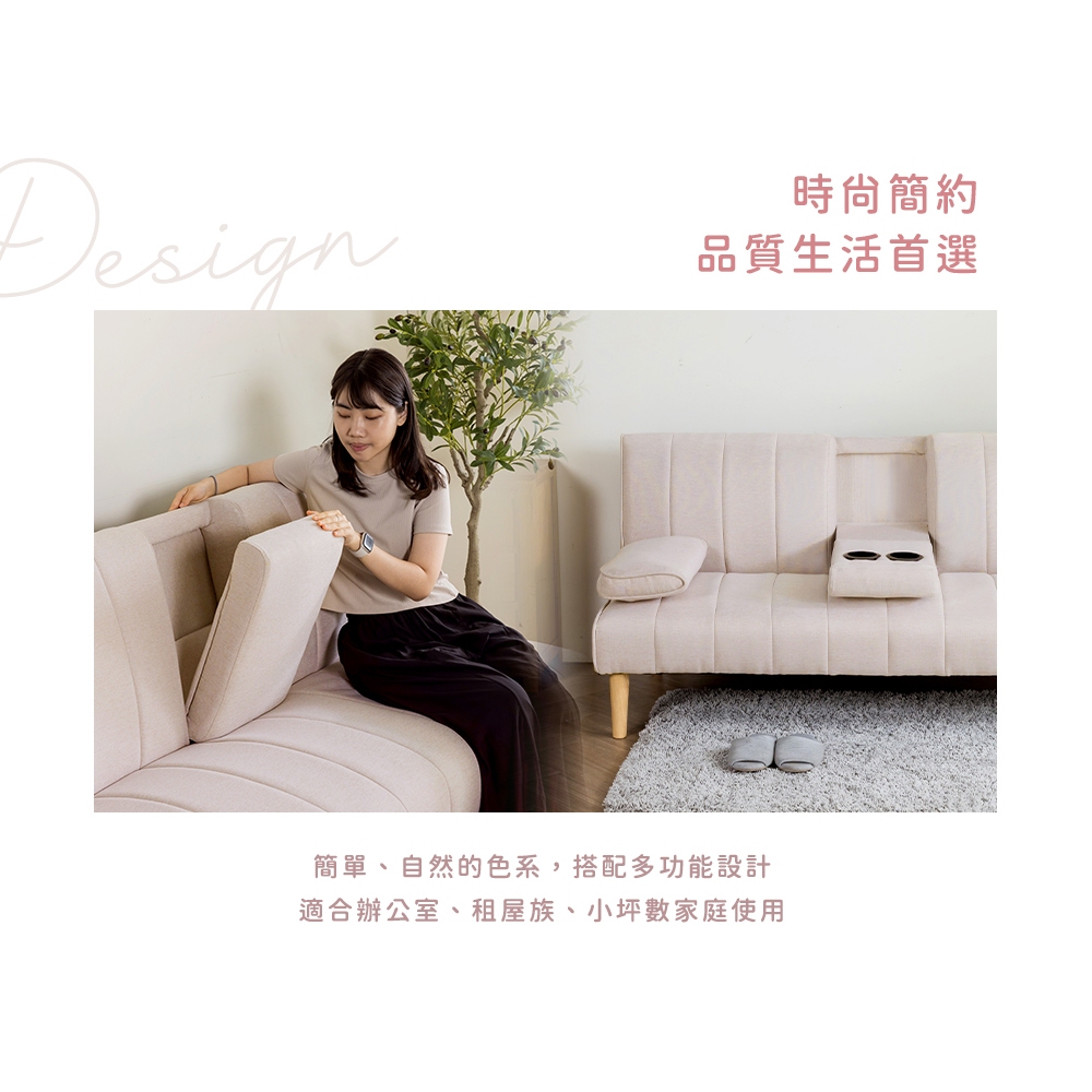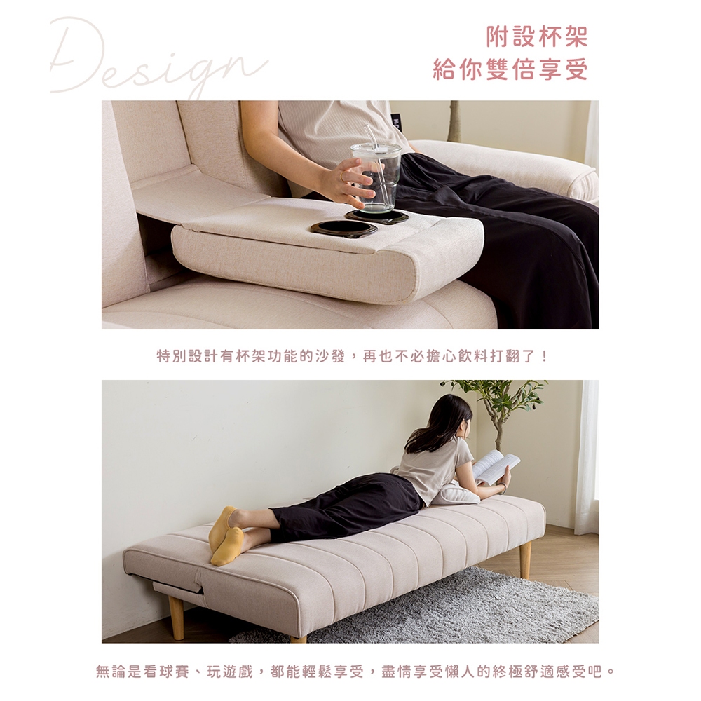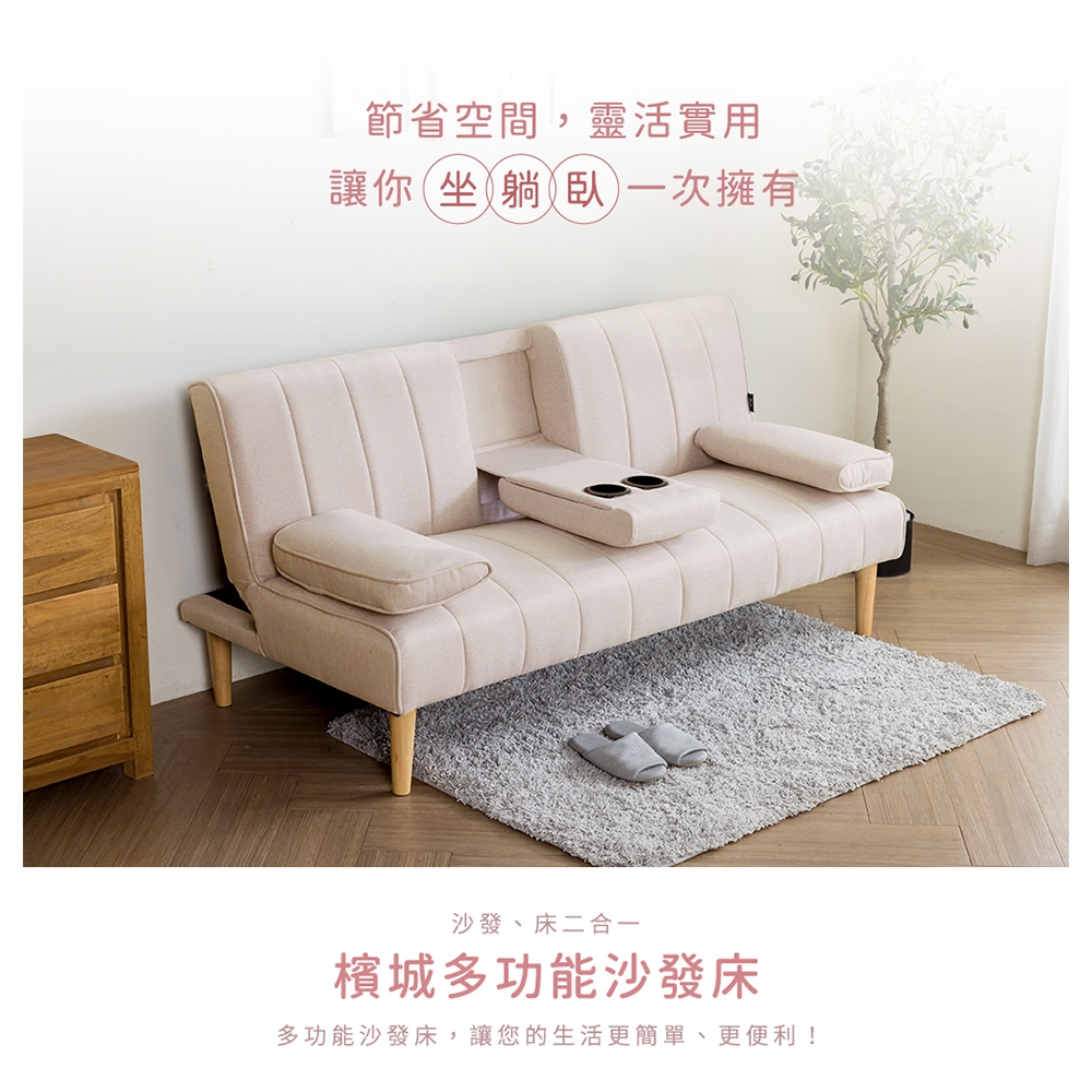 【H&D東稻家居】濱城多功能沙發床/雙人沙發/布沙發/附設杯架-二色 【1126】-DIY自行組裝(簡易)灰色布|米色布SofasH&D東稻家居