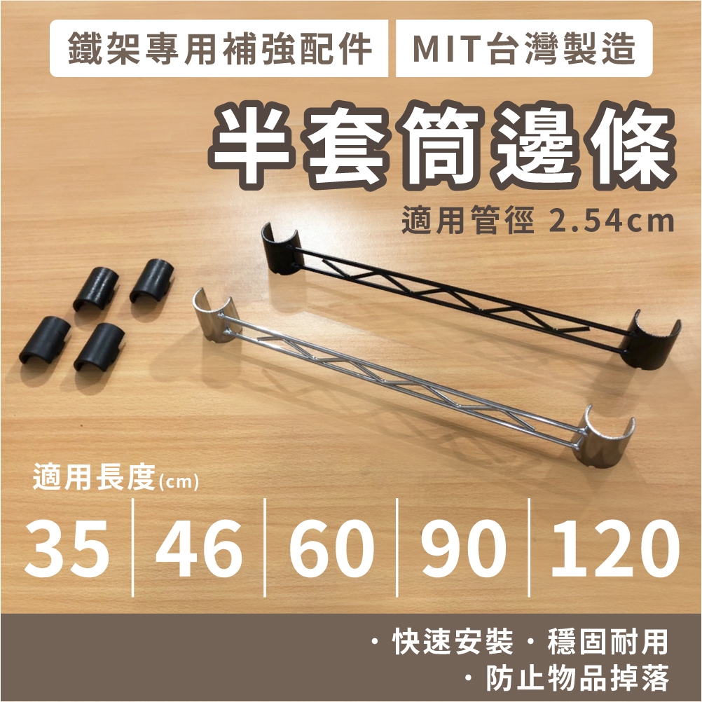 鐵架配件|半套筒側擋邊條(電鍍色/黑色) 側邊條 補強桿邊條 波浪架 鐵力士架配件(附夾片)黑色,35CM|黑色,46CM|黑色,90CM|電鍍色,35CM|電鍍色,46CM|電鍍色,90CM|黑色,60CM|電鍍色,60CM|黑色,120CM|電鍍色,120CMShelves & RacksKIWISH居家生活