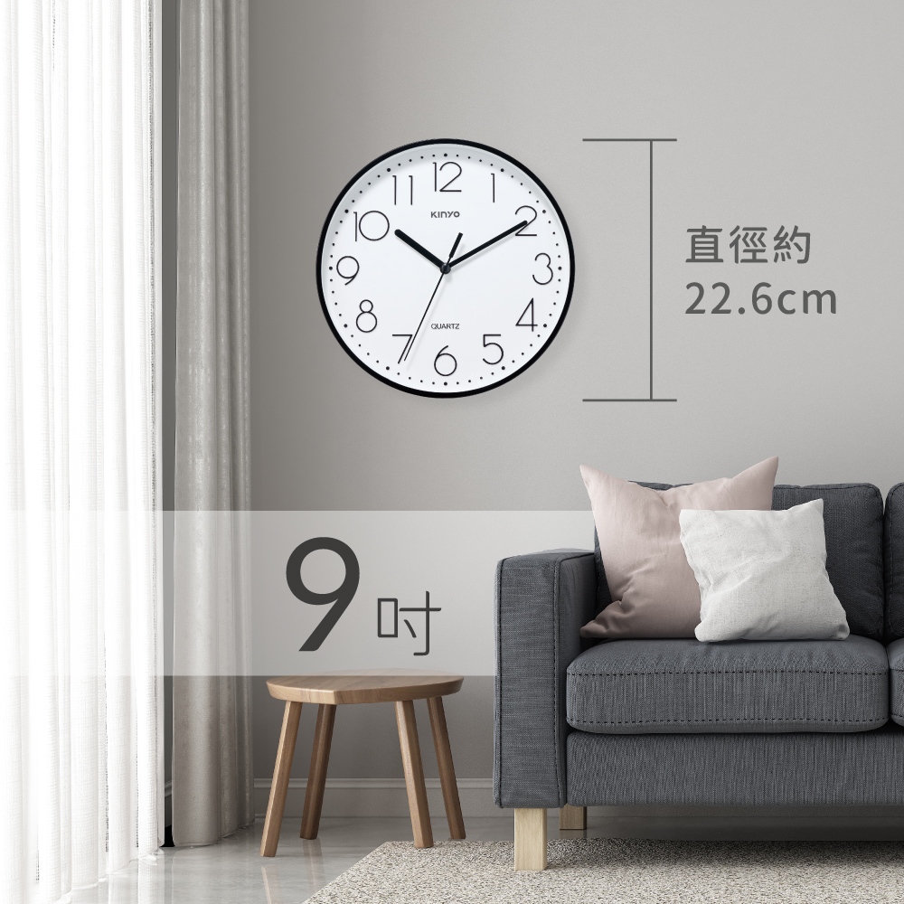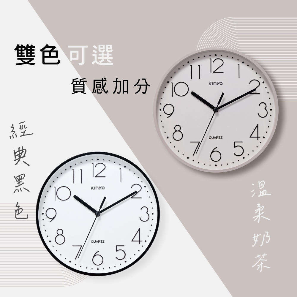 〖KINYO〗 9吋時線簡約掛鐘 (CL) 無滴答聲 簡約大數字 質感居家CL221B 黑色|CL221MT 奶茶色ClocksKINYO官方旗艦店_家電館