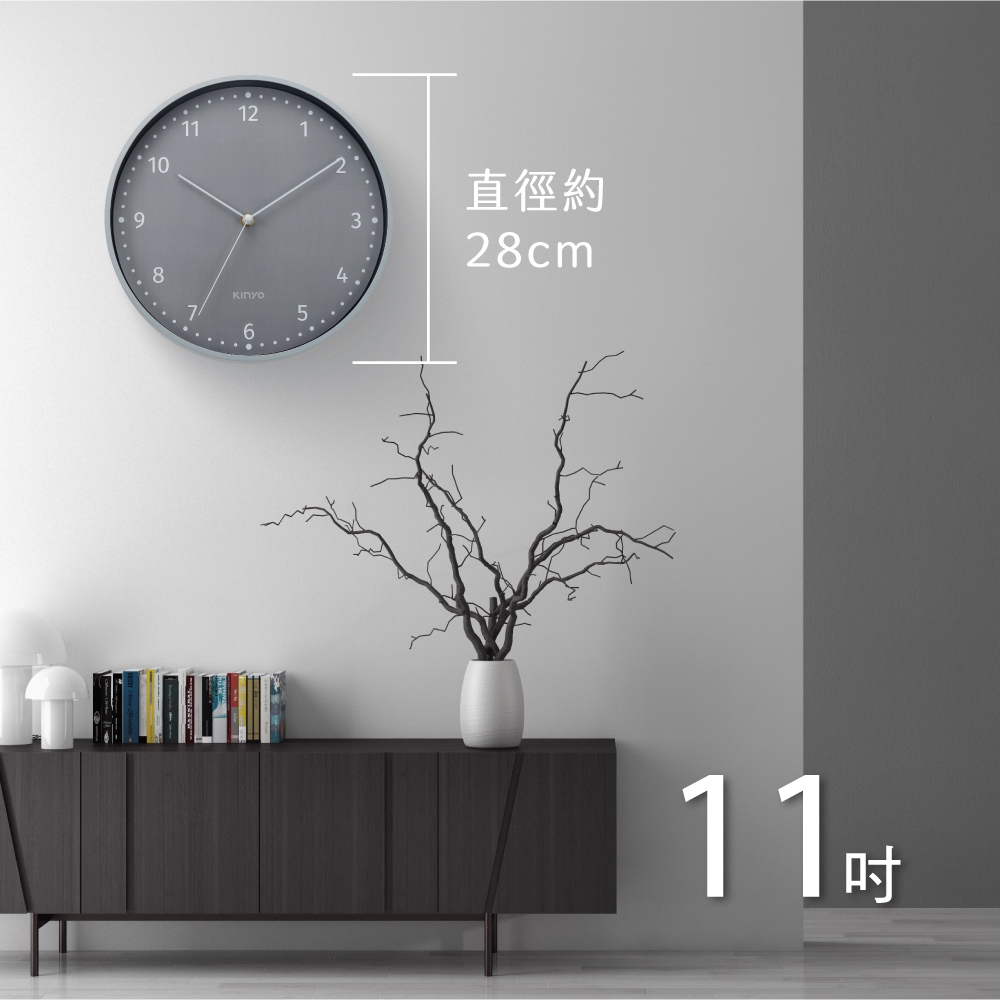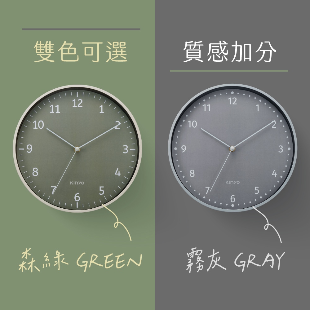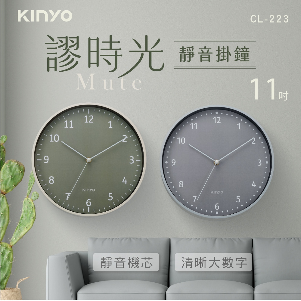 〖KINYO〗 謬時光靜音掛鐘11吋 (CL) 無滴答聲 簡約大數字 質感居家CL223G 綠色|CL223GY 灰色ClocksKINYO官方旗艦店_家電館
