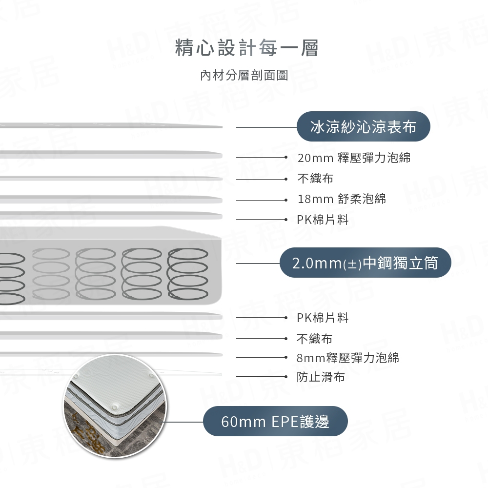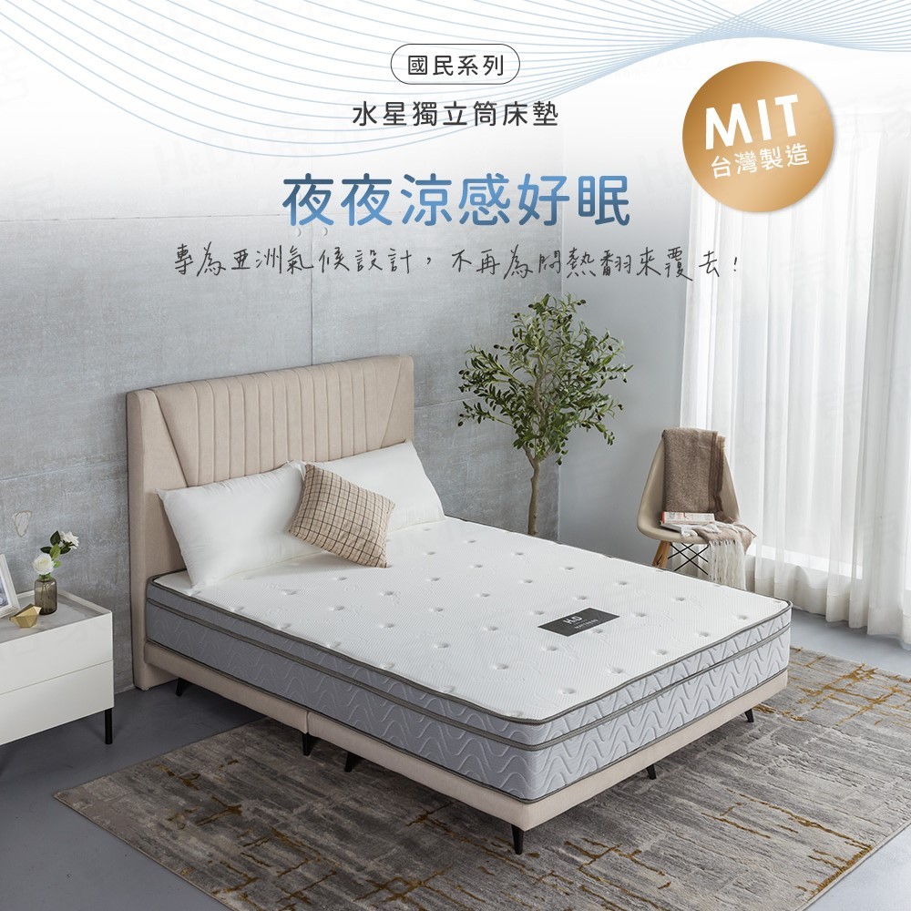 【H&D 東稻家居】國民系列-軟硬適中-冰晶紗水星獨立筒床墊 涼感床墊 單人/雙人/雙人加大/雙人特大 涼感獨立筒床墊6尺雙人加大|6*7尺特大 (特殊規格 請確認再下單)|3.5尺單人加大|5尺雙人MattressesH&D東稻家居