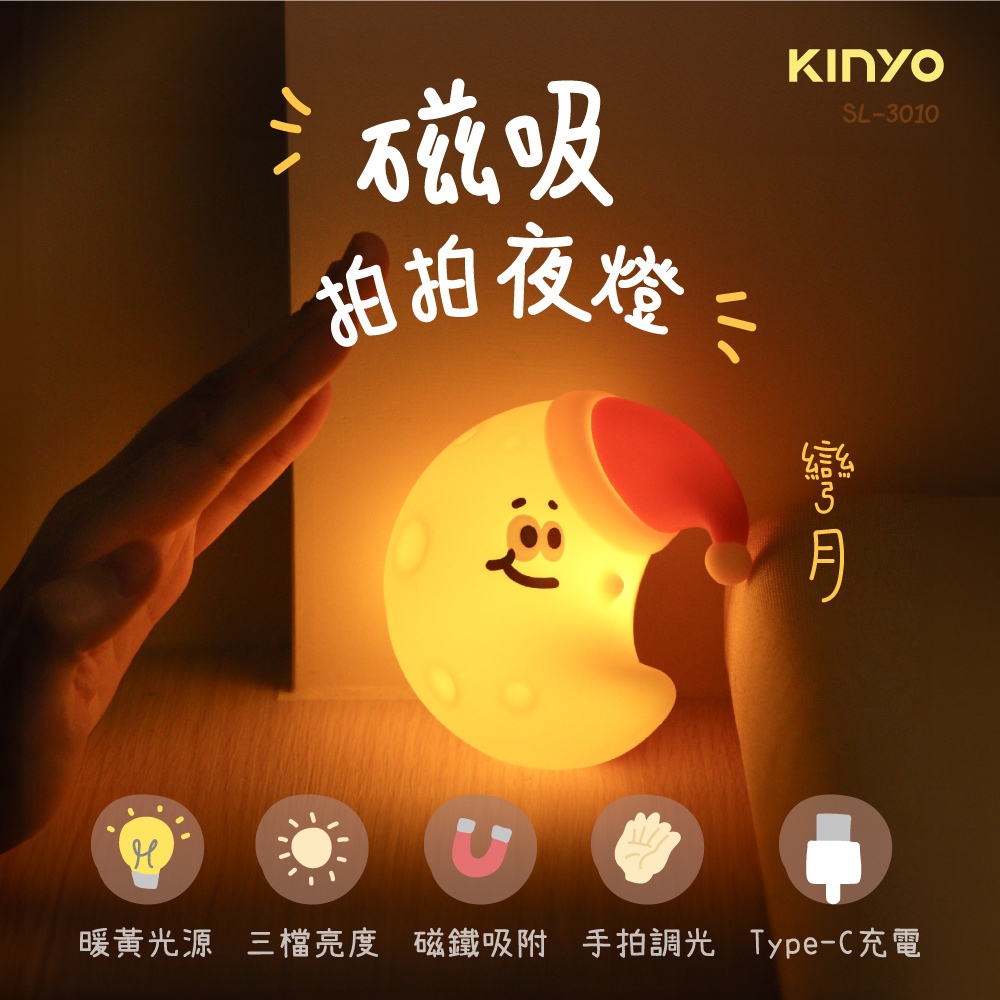 〖KINYO〗 磁吸拍拍夜燈 彎月 (SL)小夜燈 走廊燈 床頭燈 磁吸燈 暖黃光 拍拍燈 三檔亮度SL3010 磁吸拍拍夜燈 彎月KINYO官方旗艦店_家電館