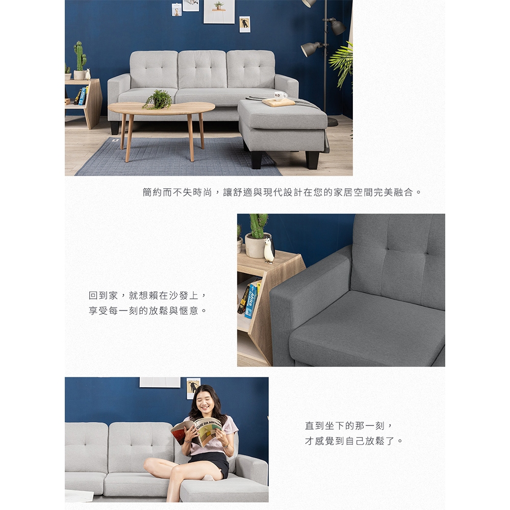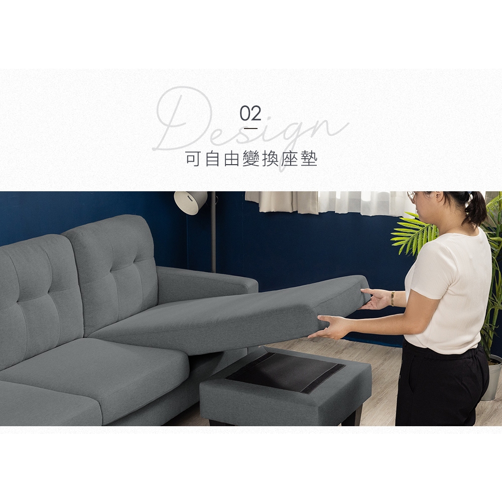 【H&D東稻家居】奈比多三人沙發+腳凳/L型沙發/變化型沙發-194cm【110100】深灰|淺灰SofasH&D東稻家居