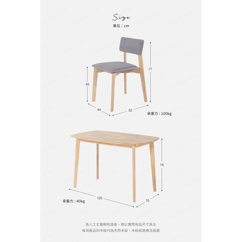 【H&D 東稻家居】Salaman 沙拉曼原木餐桌椅 4尺餐桌 椅子 化妝椅 休閒椅 工作椅 學習椅 一桌四椅 到府組裝120*70桌子 另收勞務費400/件|椅子一張 另收勞務費100元/件|椅子兩張 另收勞務費200元/組|椅子四張 另收勞務費400/組|一桌四椅 另收勞務費800元/組Desks & TablesH&D東稻家居