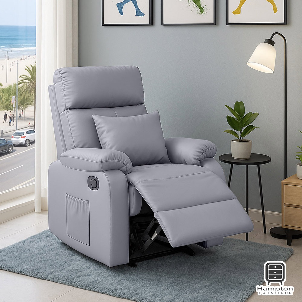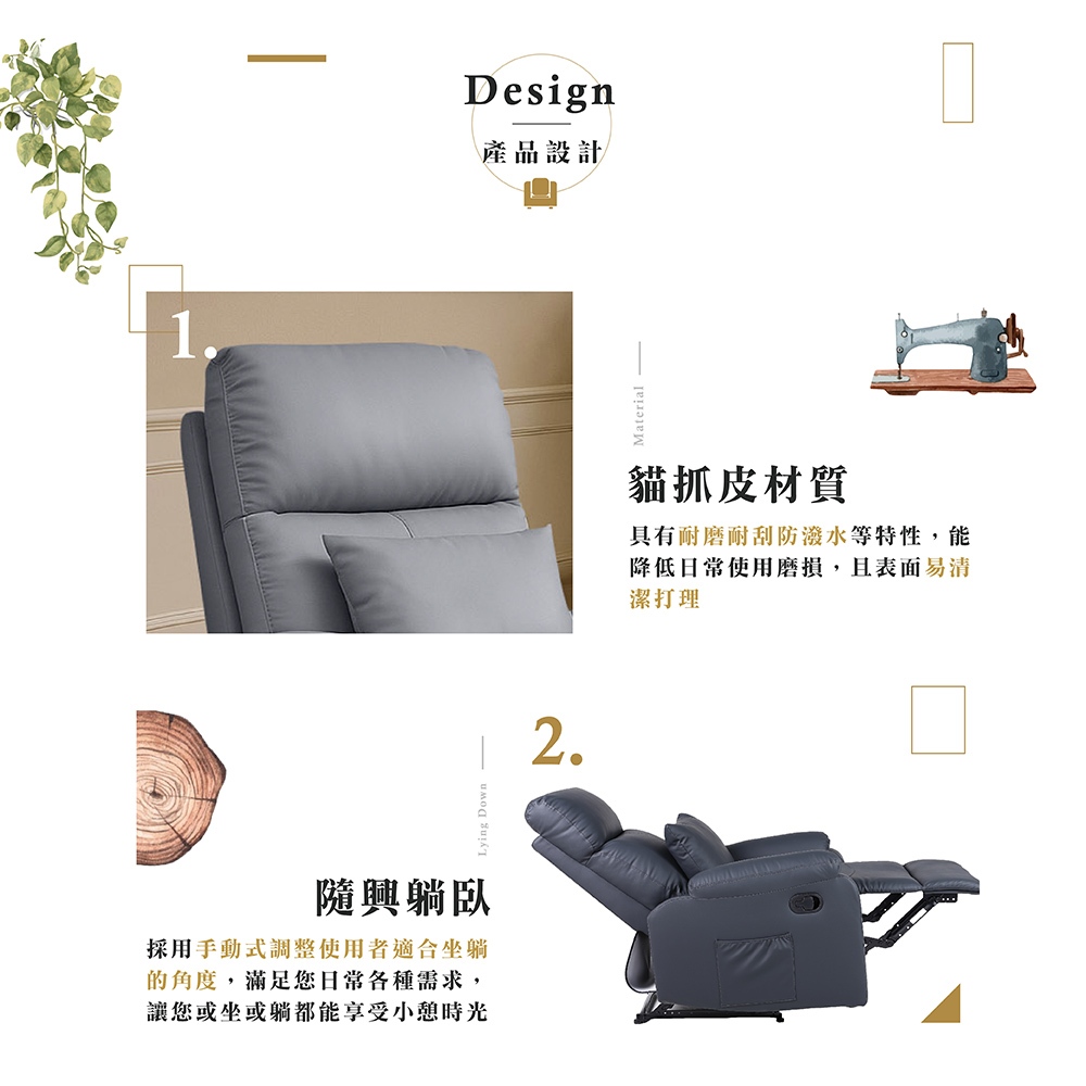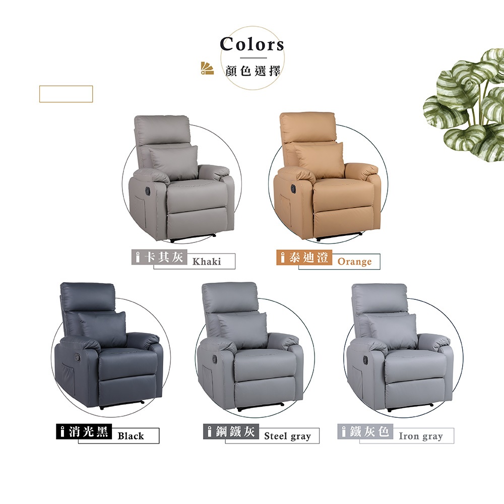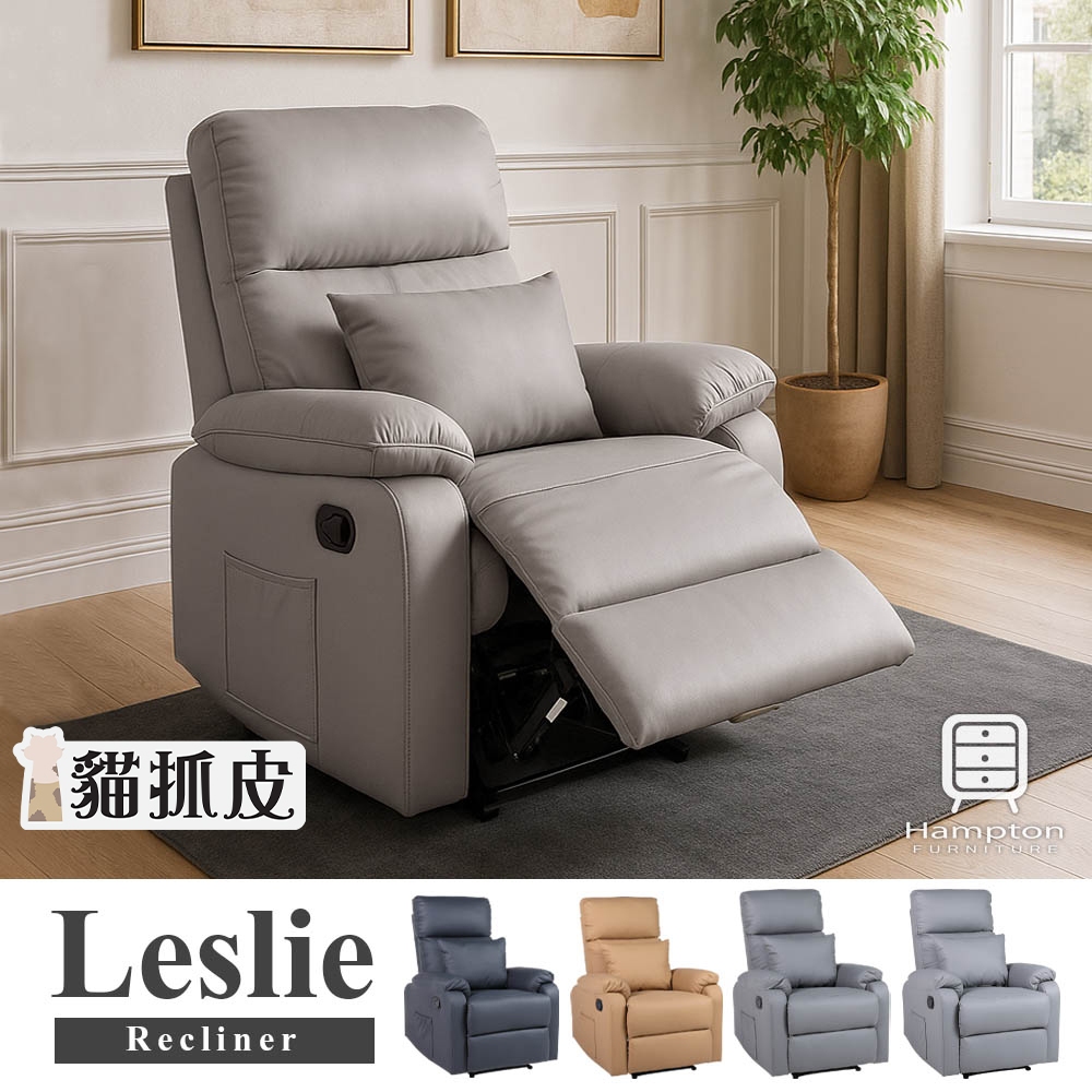 【Hampton 漢汀堡】萊斯利手動躺椅-多色可選(含腰枕)消光黑|泰迪橙|卡其灰|鐵灰色|鋼鐵灰SofasHampton漢汀堡家居