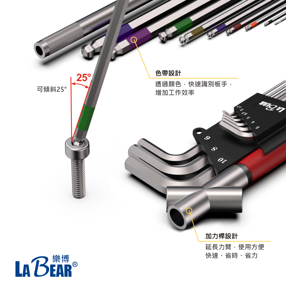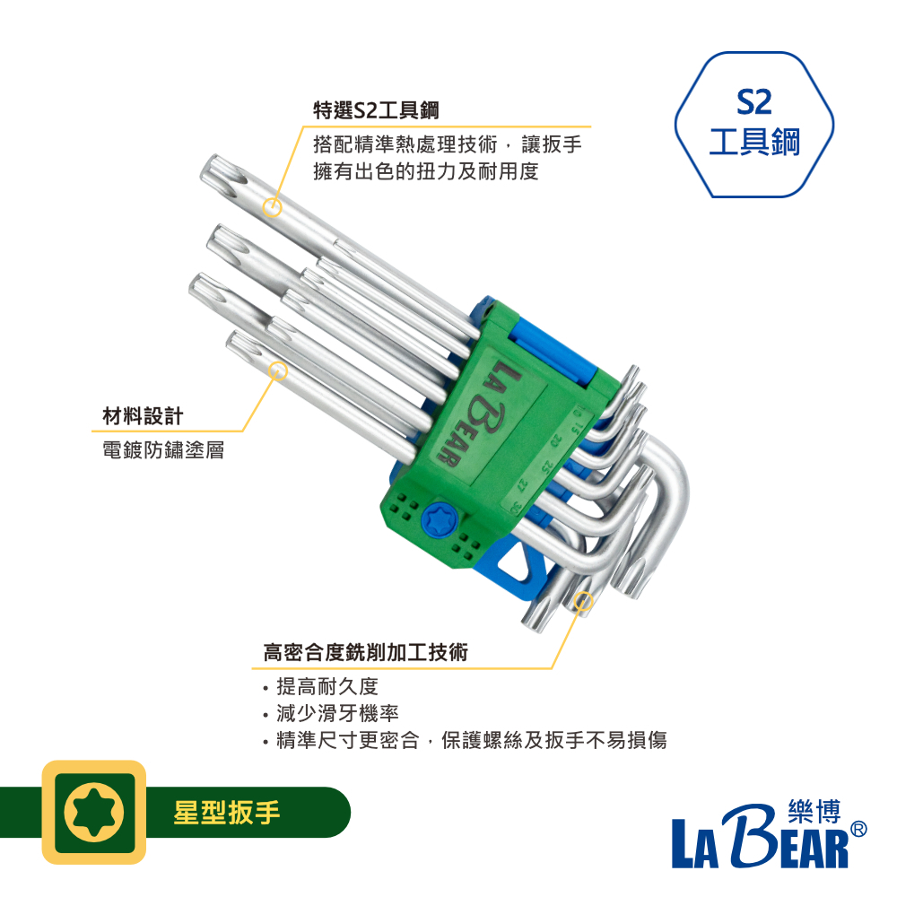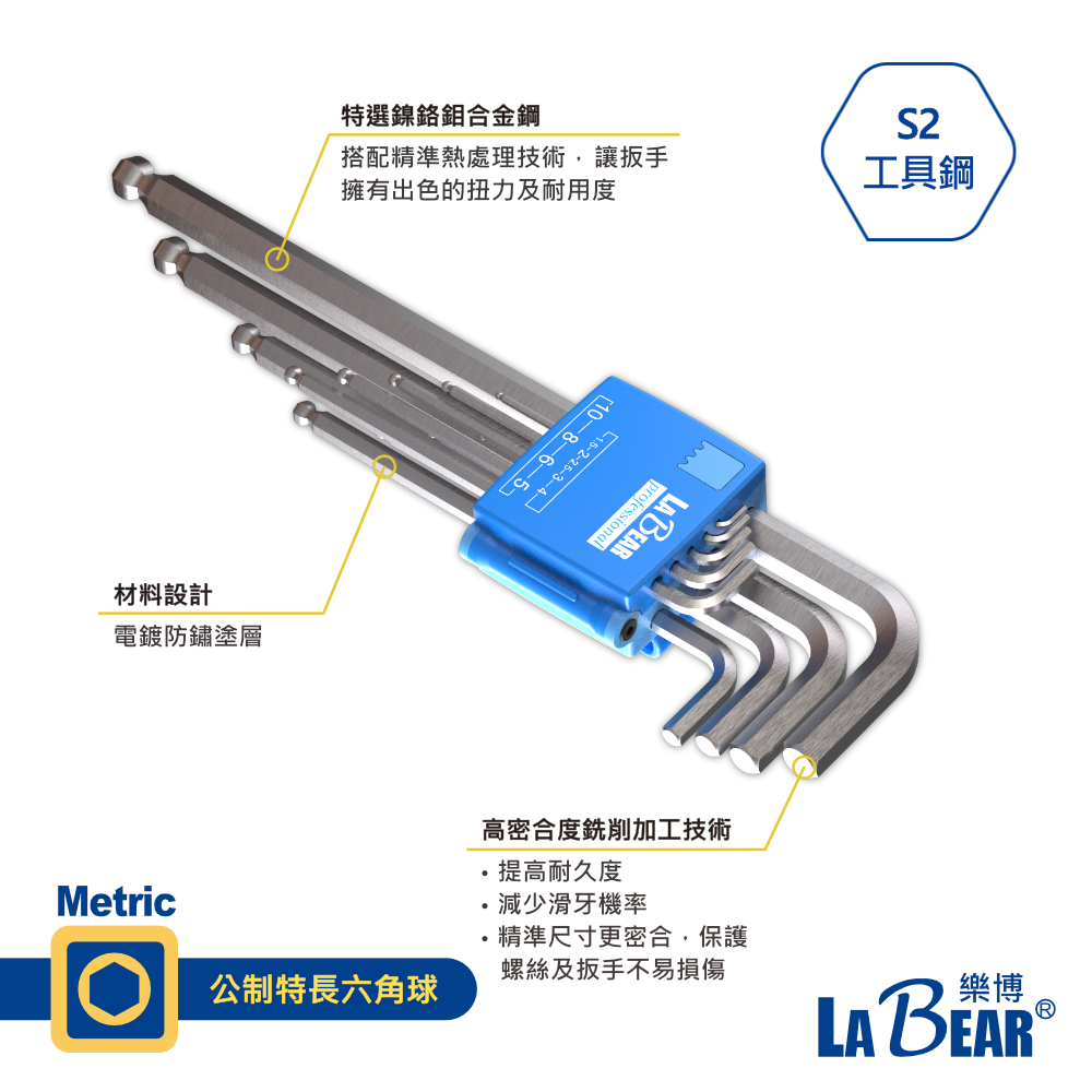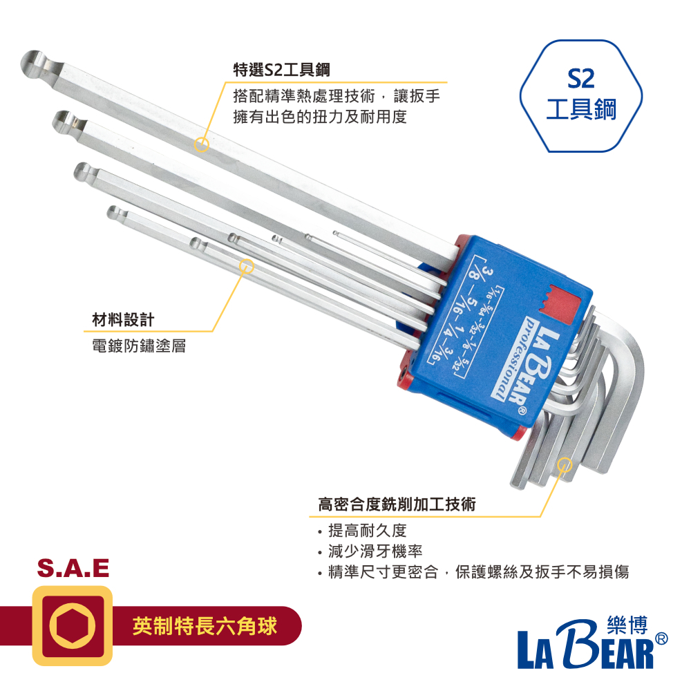 【LaBear】9件式六角 / 星型扳手 加長六角 公制/英制 六角扳手 星型扳手 加力桿 顏色辨識 L型扳手 台灣製六角扳手9+1件組(含加力桿)|英制特長六角|星型扳手組|公制特長【六角球】|六角扳手加力桿(藍色)|英制特長【六角球】ToolsLaBear 樂博工具