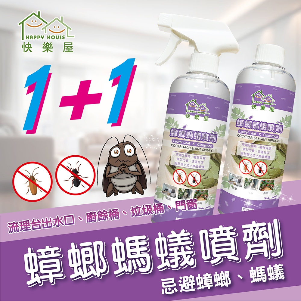 【1+1】快樂屋蟑螂螞蟻噴劑500ml_ 一點絕 水蒸 螞蟻 蟑螂 蟑螂屋 螞蟻餌劑 天然 驅蟲