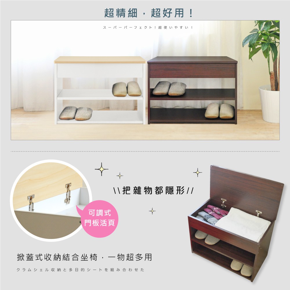 HOPMA掀蓋式穿鞋椅 台灣製造 坐椅 隱藏式多功能鞋櫃 玄關櫃 收納櫃 邊櫃 鞋架C-S645胡桃木|楓木配白Cupboards & CabinetsHOPMA 合馬家具