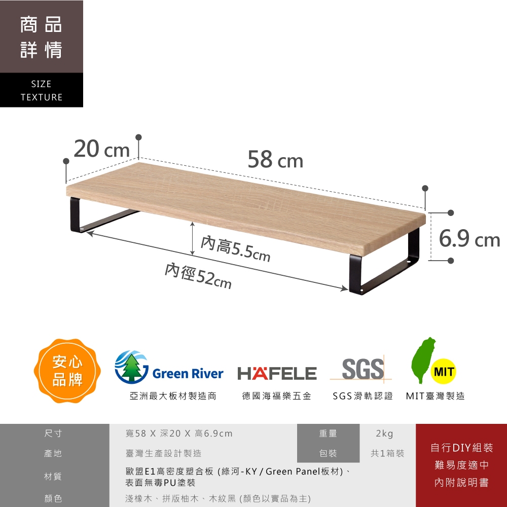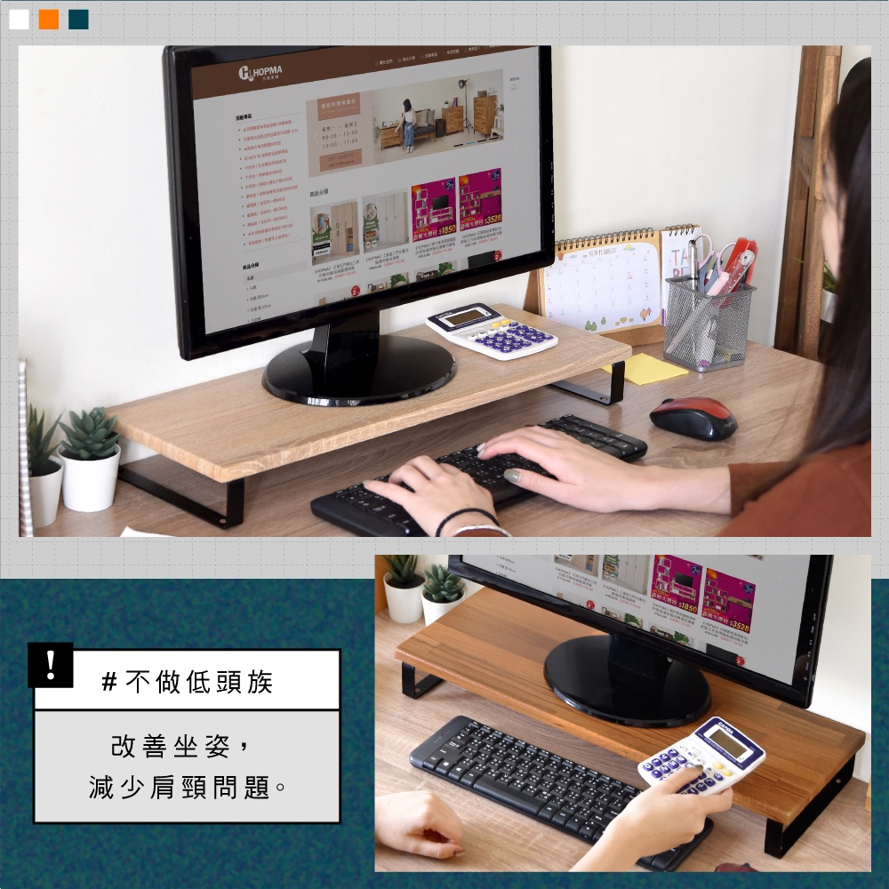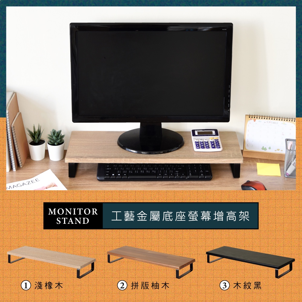 HOPMA工藝金屬底座螢幕增高架 台灣製造 螢幕架 收納架 電腦架 螢幕增高架 展示架 鍵盤收納架 桌上架E-5601淺橡(漂流)木|拼版柚木|木紋黑Shelves & RacksHOPMA 合馬家具