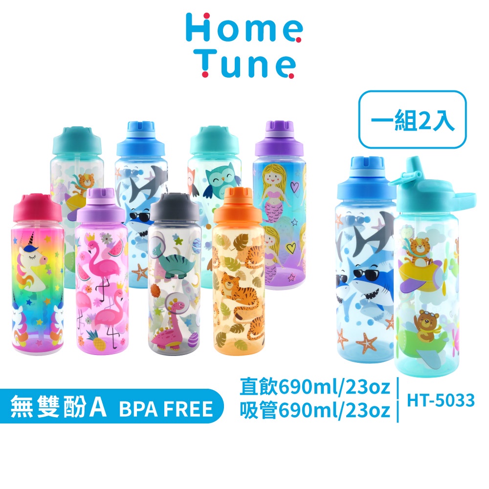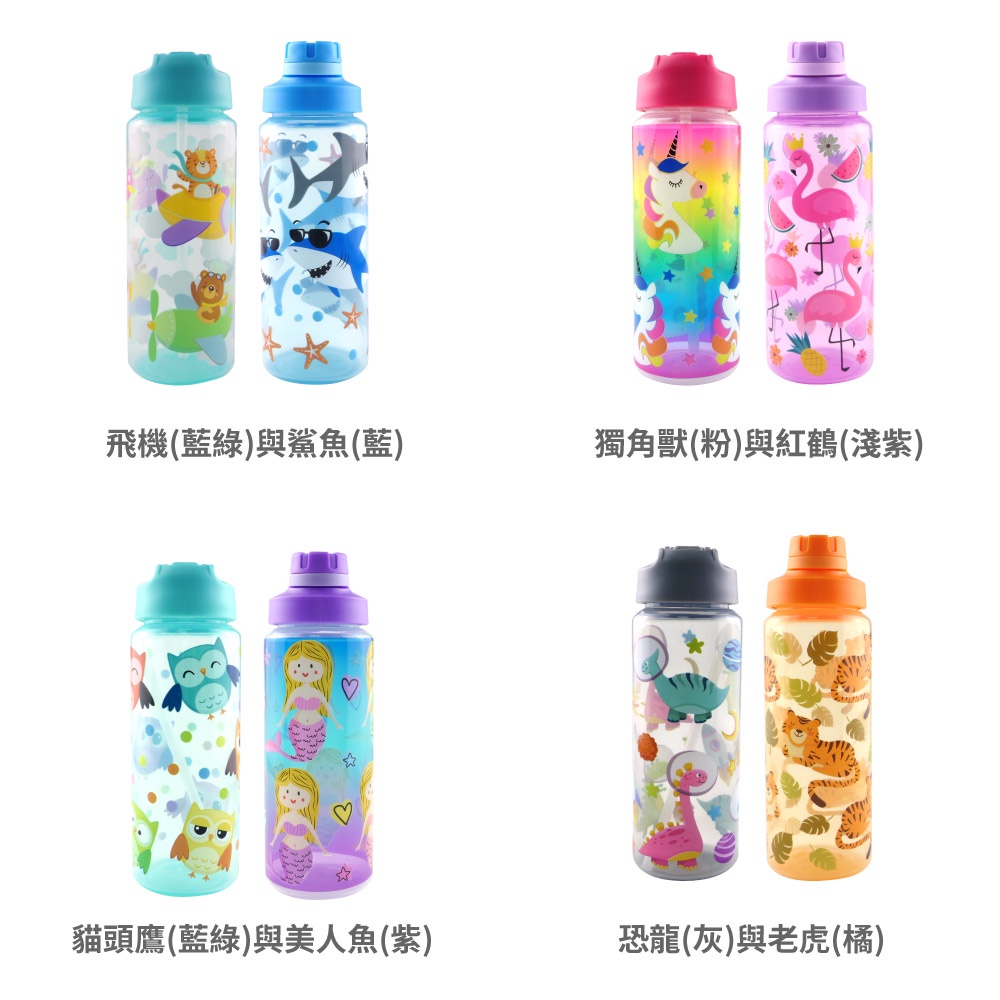 Home Tune家音 兒童翻蓋吸管/旋蓋直飲水壺23oz/690ml(一組2入)|兒童水壺冷水壺透明水壺吸管水壺恐龍(灰)與老虎(橘)|獨角獸(粉)與紅鶴(淺紫)|貓頭鷹(藍綠)與美人魚(紫)|飛機(藍綠)與鯊魚(藍)|飛機(藍綠)|鯊魚(藍)|恐龍(灰)|紅鶴(淺紫)|貓頭鷹(藍綠)|美人魚(紫)OthersHome Tune家音