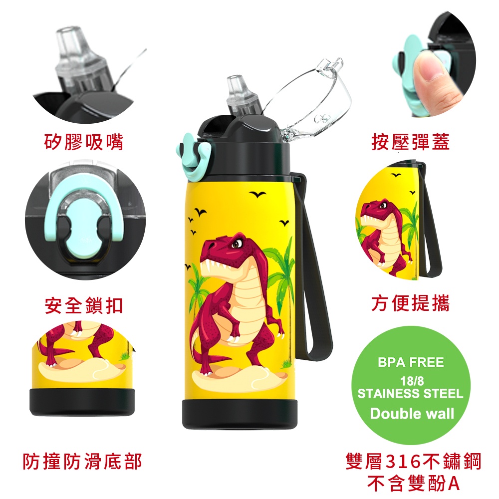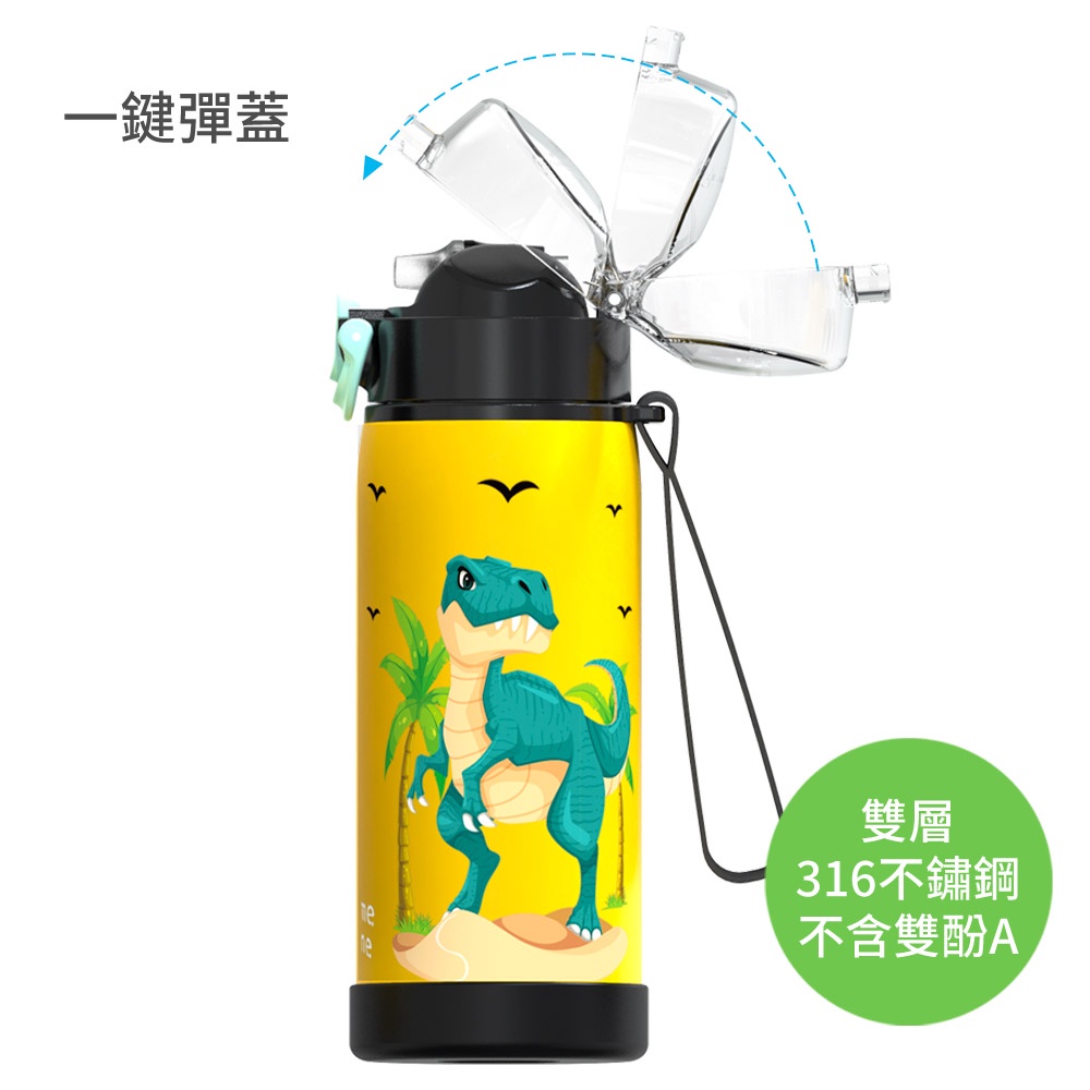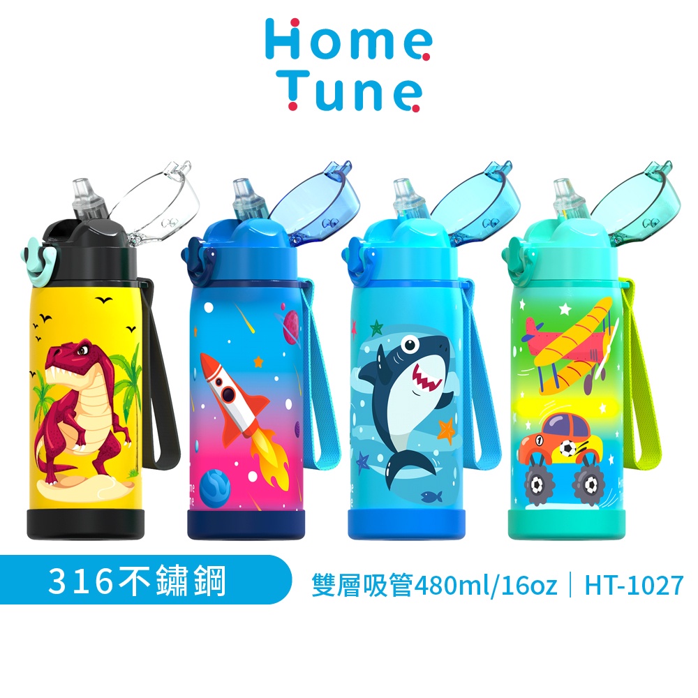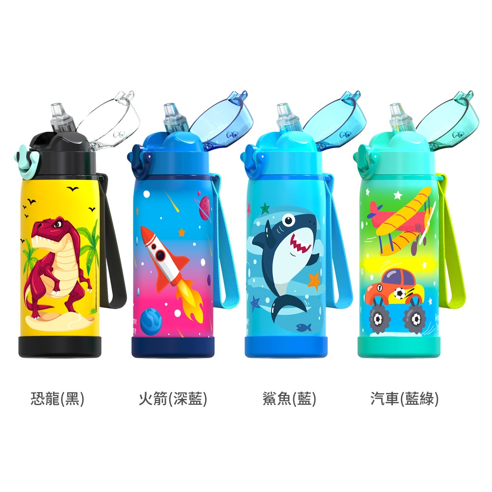 Home Tune家音 316不鏽鋼鎖扣彈蓋吸管式水壺480ml|雙層真空保溫瓶兒童保溫保冷水壺吸管水壺_HT-1027火箭(深藍)|鯊魚(藍)|汽車(藍綠)|恐龍(黑)Water Bottles & AccessoriesHome Tune家音