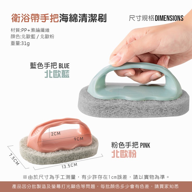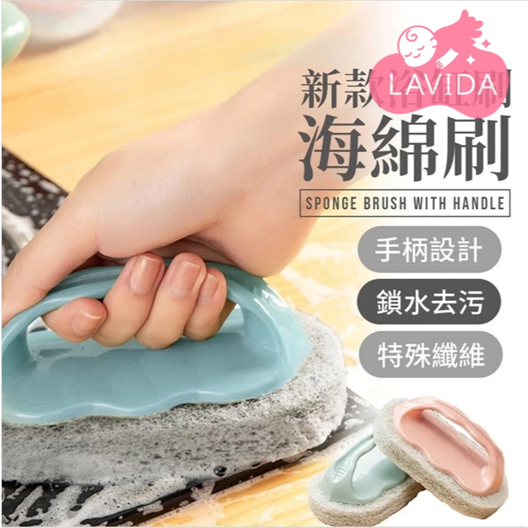 【LAVIDA嚴選】浴缸刷 手把海綿清潔刷 加厚海綿刷 除垢刷 萬用刷 帶把手浴廁刷 廚房刷 洗碗刷 菜瓜布刷01藍色手把|02粉色手把Sponges & Scouring PadsLAVIDA 育兒好好玩!