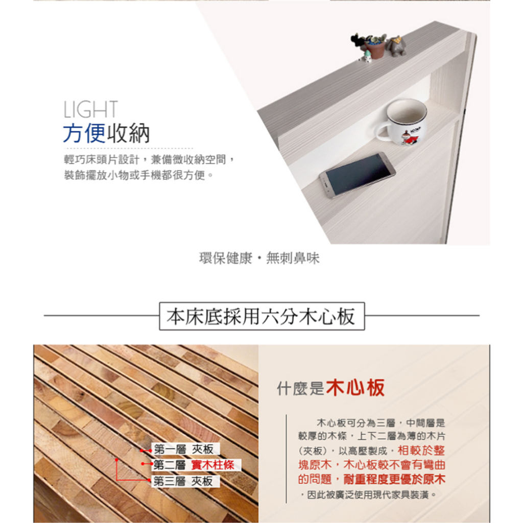 • IHouse-【搭配床墊送保潔墊】山田 房間二件組(LED燈光插座床頭片+6分底)