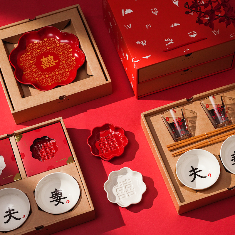 【經典再獻 復古款】花見囍囍 顯影醬油碟禮盒組雙入禮盒+紙袋|雙入湯筷禮盒+紙袋|雙入禮盒|雙入湯筷禮盒BowlsMao’s樂陶陶