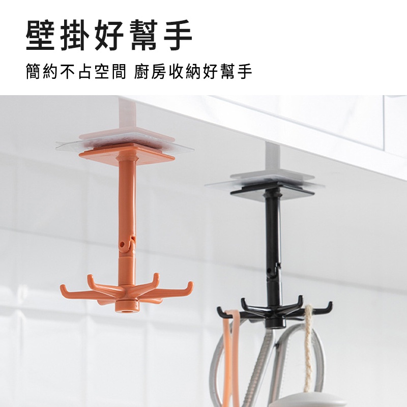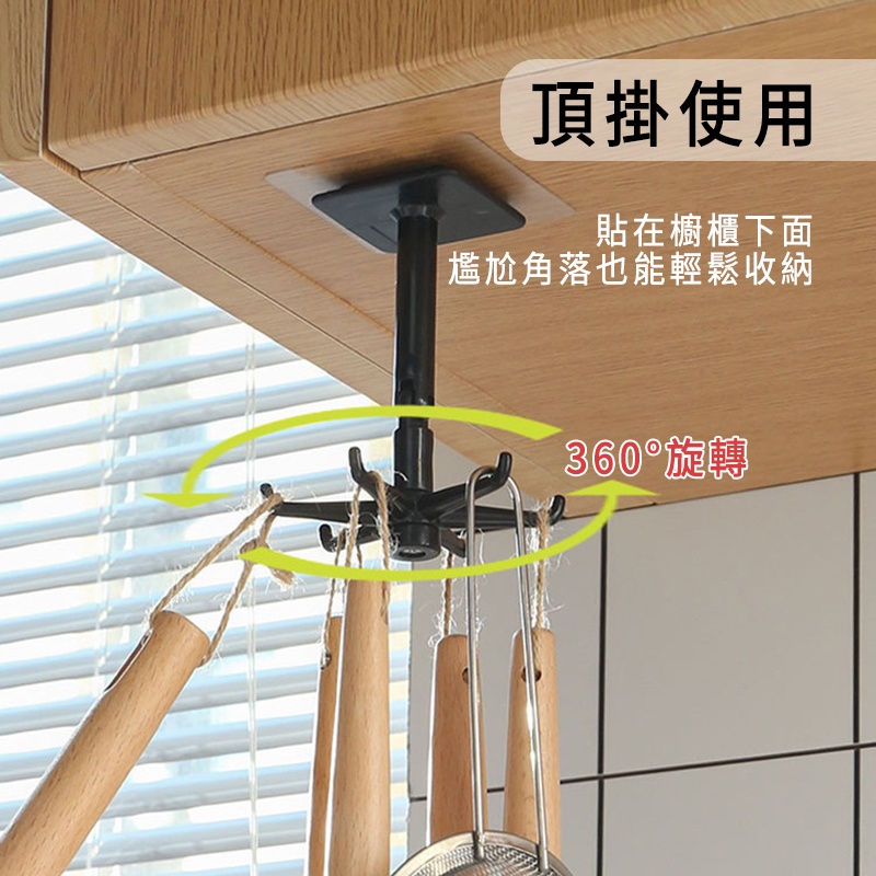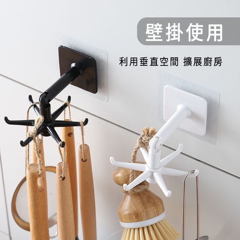 旋轉掛勾 分支旋轉掛勾 收納 掛勾 置物掛勾 分支掛勾 浴室掛勾 六爪掛勾 免釘 旋轉架 勾 廚房掛勾旋轉掛勾/黑色|旋轉掛勾/白色HooksLarmi 樂米 台灣直營店