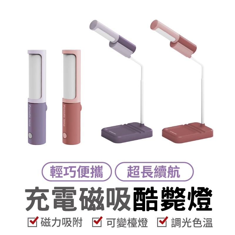 USB充電磁吸酷斃燈 充電檯燈 桌燈 臺燈 磁吸燈 檯燈立燈 護眼檯燈 露營燈 旅行居家 便攜 化妝燈 床頭燈 手持燈手持燈款/紫色|預購 手持燈款/藍色|檯燈款/白色|檯燈款/紫色|檯燈款/藍色|手持燈款/白灰色Larmi 樂米 台灣直營店