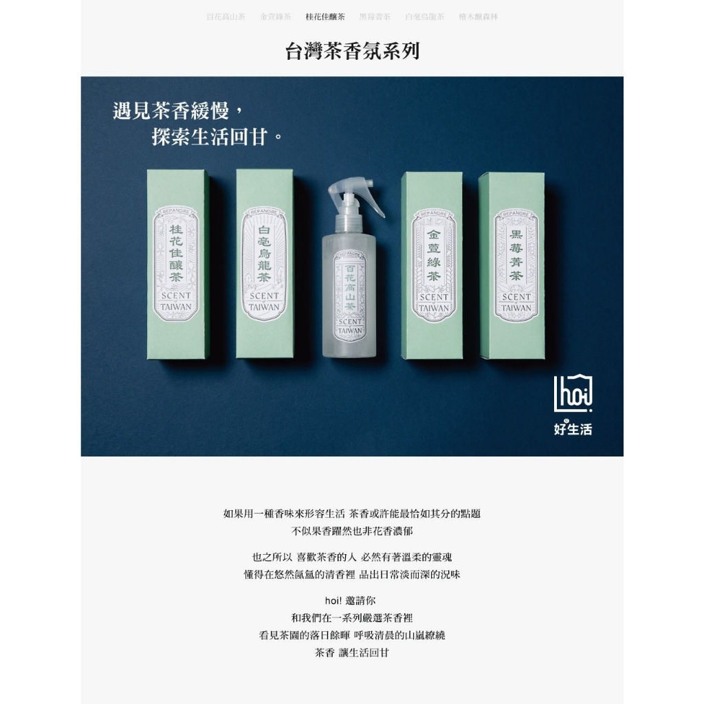 任選-hoi台灣茶香氛 織品空間噴霧250ml(百花高山茶/金萱綠茶/桂花佳釀茶/黑莓菁茶/白毫烏龍茶/檜木醺森林)百花高山茶|金萱綠茶|桂花佳釀茶|黑莓菁茶|白毫烏龍茶|檜木醺森林Othershoi! 好好生活 官方旗艦店