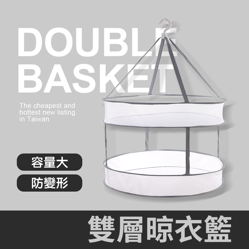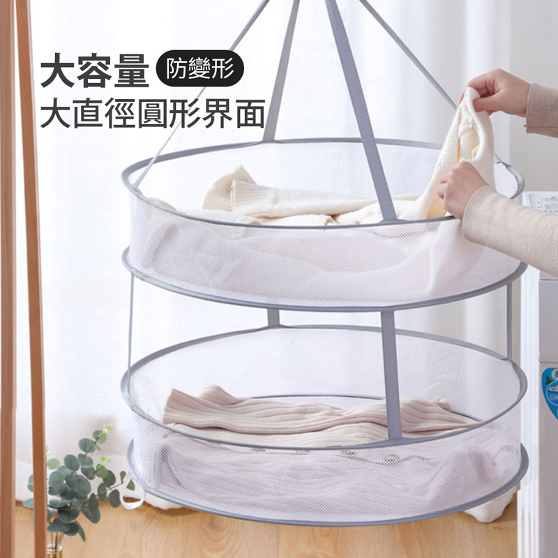 【LAVIDA嚴選】雙層晾衣籃 雙層曬衣籃 晾衣籃 曬衣籃 摺疊曬衣籃 摺疊晾衣籃 曬衣網 晾衣網 多功能曬網 圓形晾衣大雙層-晾衣籃Clotheslines & Drying RacksLAVIDA 育兒好好玩!