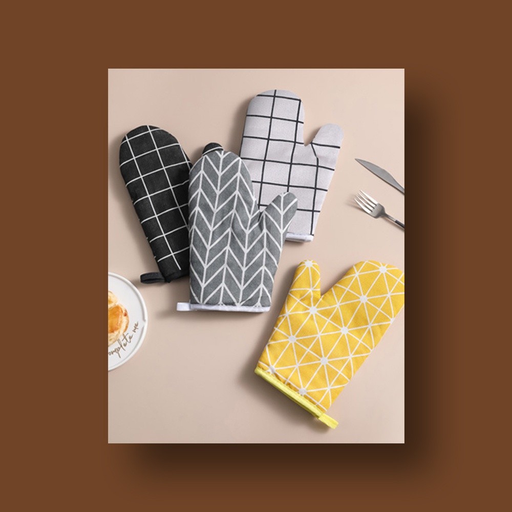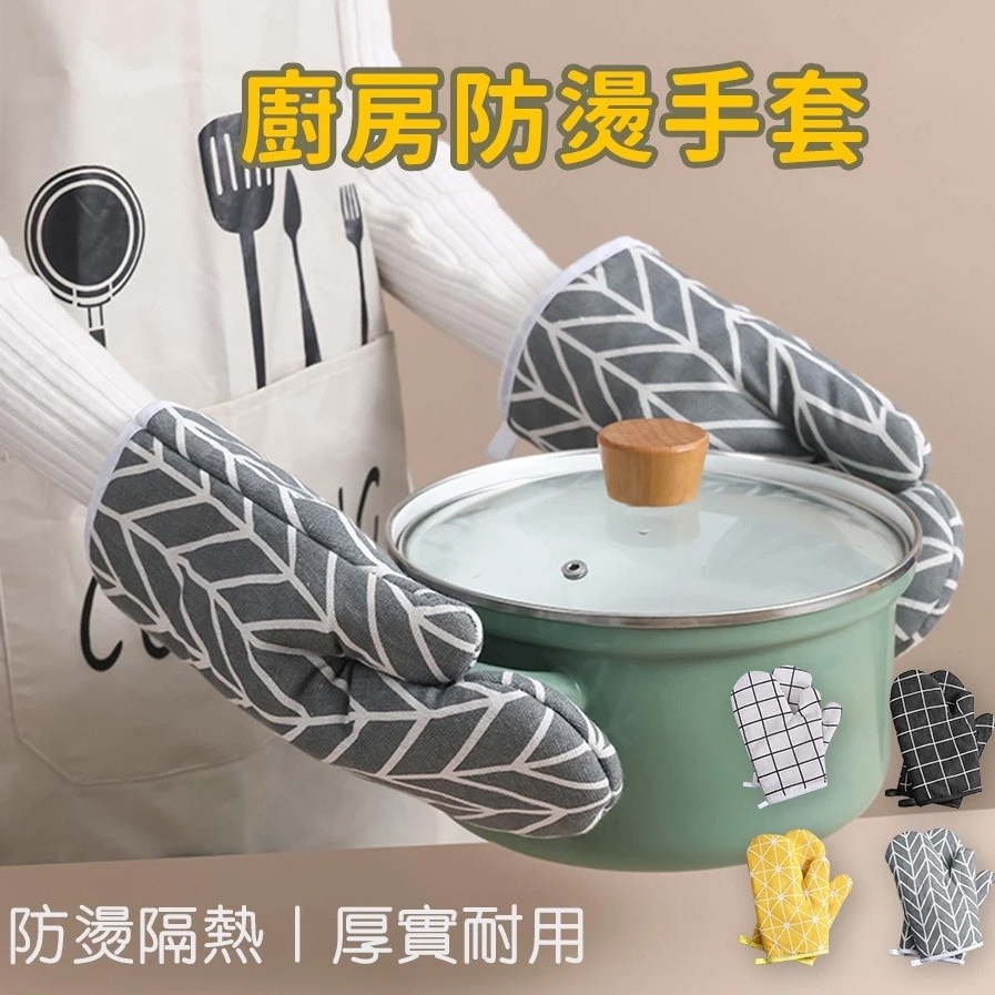 【LAVIDA嚴選】廚房防燙手套 隔熱手套 廚房手套 防燙手套 高溫手套 烘焙手套 廚具 防燙 隔熱 加厚白色格紋|黑色格紋|黃色幾何|灰色幾何Aprons & Kitchen GlovesLAVIDA 育兒好好玩!