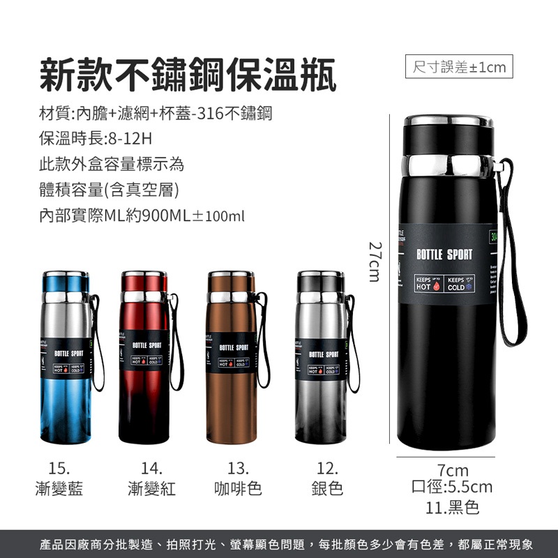 316不銹鋼保溫瓶 高質感 大容量 不鏽鋼保溫瓶 漸變色保溫杯 保溫瓶 保溫壺 保溫罐黑色▶︎新款保溫瓶|銀色▶︎新款保溫瓶|咖啡色▶︎新款保溫瓶|漸變紅▶︎新款保溫瓶|漸變藍▶︎新款保溫瓶Water Bottles & AccessoriesLAVIDA 育兒好好玩!