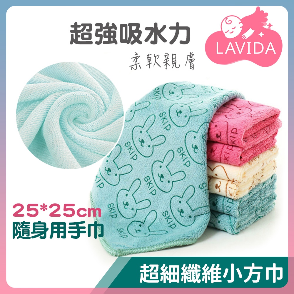 【LAVIDA嚴選】加厚款隨身小方巾 兔兔超細纖維珊瑚絨小方巾 方巾 毛巾 擦汗巾 萬用巾粉|黃|綠|藍Towels & BathrobesLAVIDA 育兒好好玩!