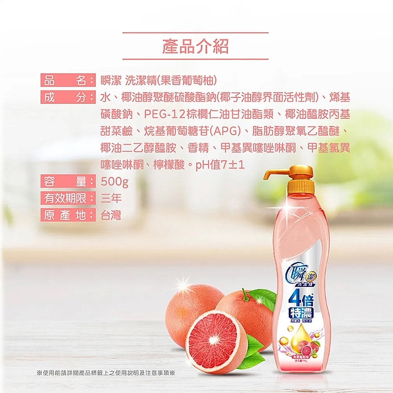 【妙管家】瞬潔洗潔精(果香葡萄柚/植淨綠茶) 500g 洗碗精 廚房清潔 洗碗盤果香葡萄柚|植淨綠茶Cleaning AgentsHomey家居衣著