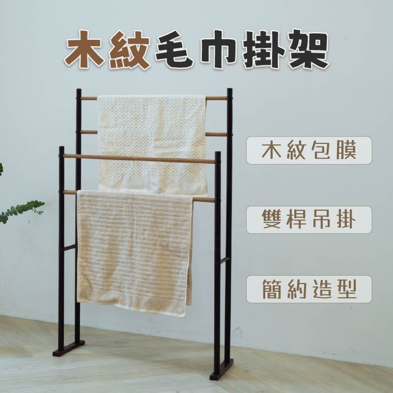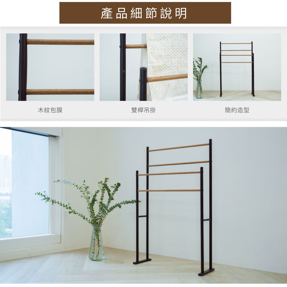 【ikloo】木紋設計款毛巾掛架(落地式置物架)