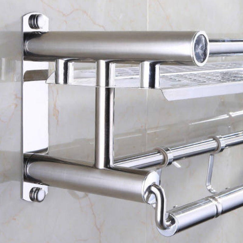 浴巾置物架(打孔/免打孔) 不銹鋼毛巾架 雙層加厚浴巾架 置物架 掛勾(限宅)【DW418】A 打孔/免打孔 兩用|B 打孔|【AN120】打孔/免打孔 兩用 NGBathroom Racks & CabinetsJOLIN久林批發~台灣出貨~滿50再結帳~