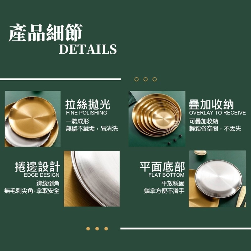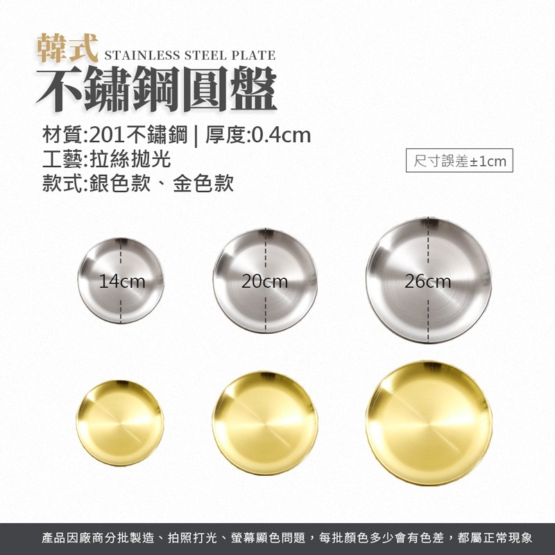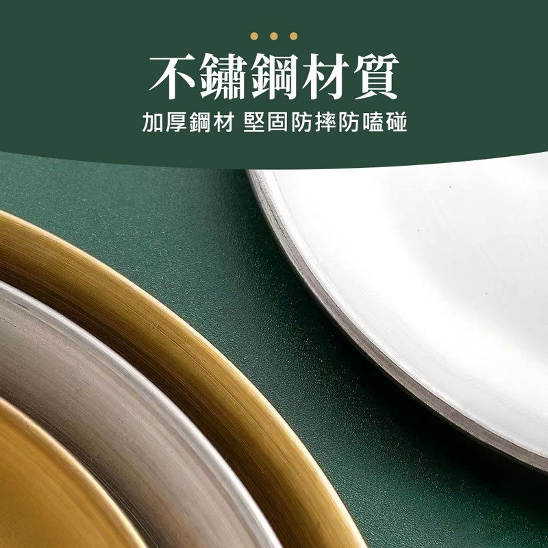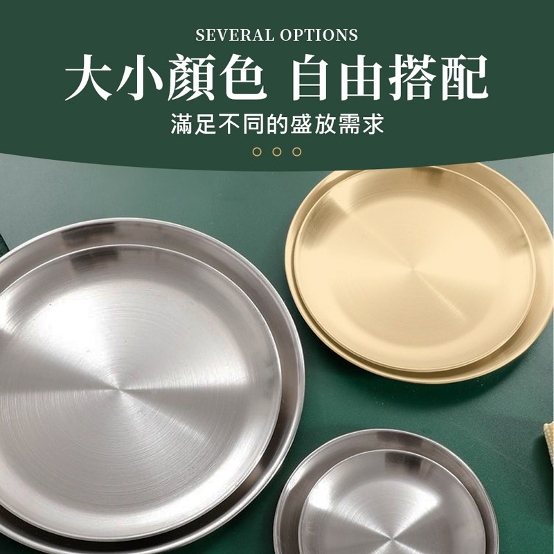【LAVIDA嚴選】不銹鋼圓盤 加厚鋼材 不鏽鋼餐盤 蒸盤 烤肉盤 碟子 料理盤 水果盤 淺盤 蛋糕盤 菜盤 露營用品金色14公分|銀色14公分|銀色20公分|金色20公分|金色26公分|銀色26公分PlatesLAVIDA 育兒好好玩!