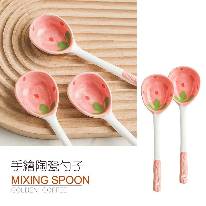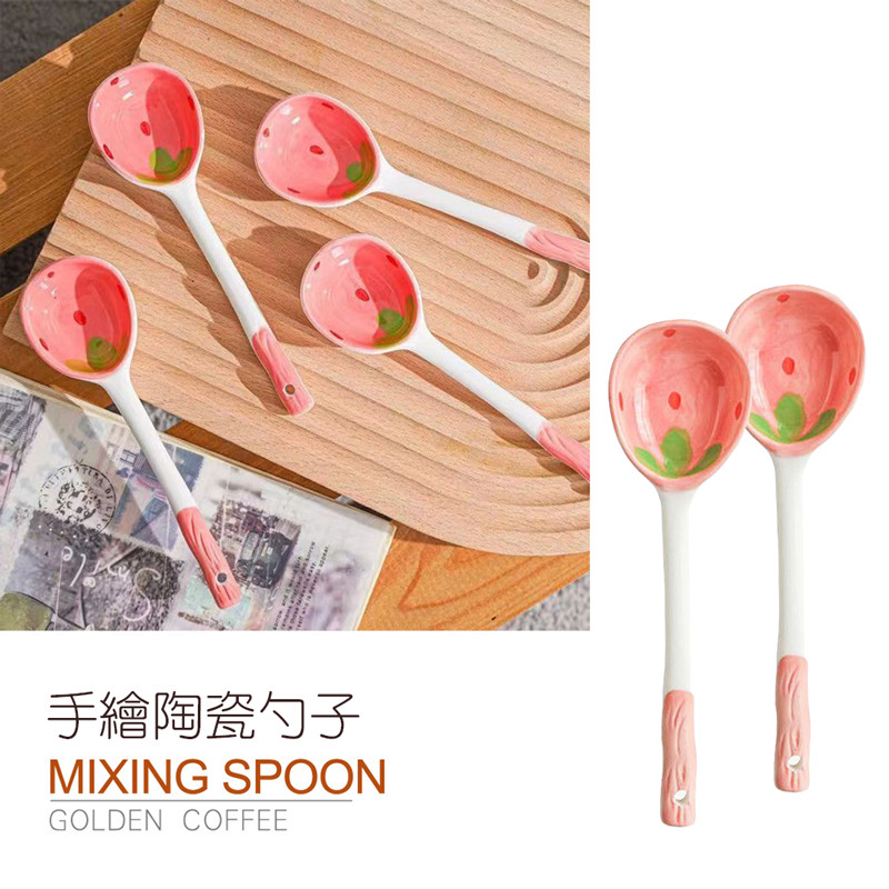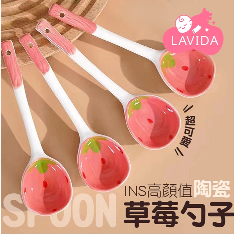 【LAVIDA嚴選】草莓勺子 可愛陶瓷勺子 草莓湯勺 長柄湯勺 手繪陶瓷勺子 廚房用具 勺子 大湯匙 餐具草莓勺子|XCutleriesLAVIDA 育兒好好玩!