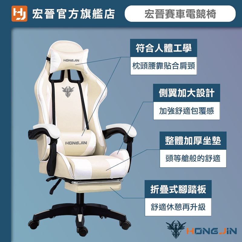 宏晉 賽車電競椅 超穩椅背可躺 加厚椅墊 伸縮腳踏板 SGS合格氣壓桿 舒適久坐 耐磨防刮 電腦椅 會議椅 辦公椅聖教軍(米白設計+舒眠頭枕+飽滿腰靠)|影族(黑銀設計+舒眠頭枕+飽滿腰靠)|黑騎士(黑灰設計+舒眠頭枕+飽滿腰靠)Benches, Chairs & StoolsHONG JIN 宏晉 |3C資訊廣場