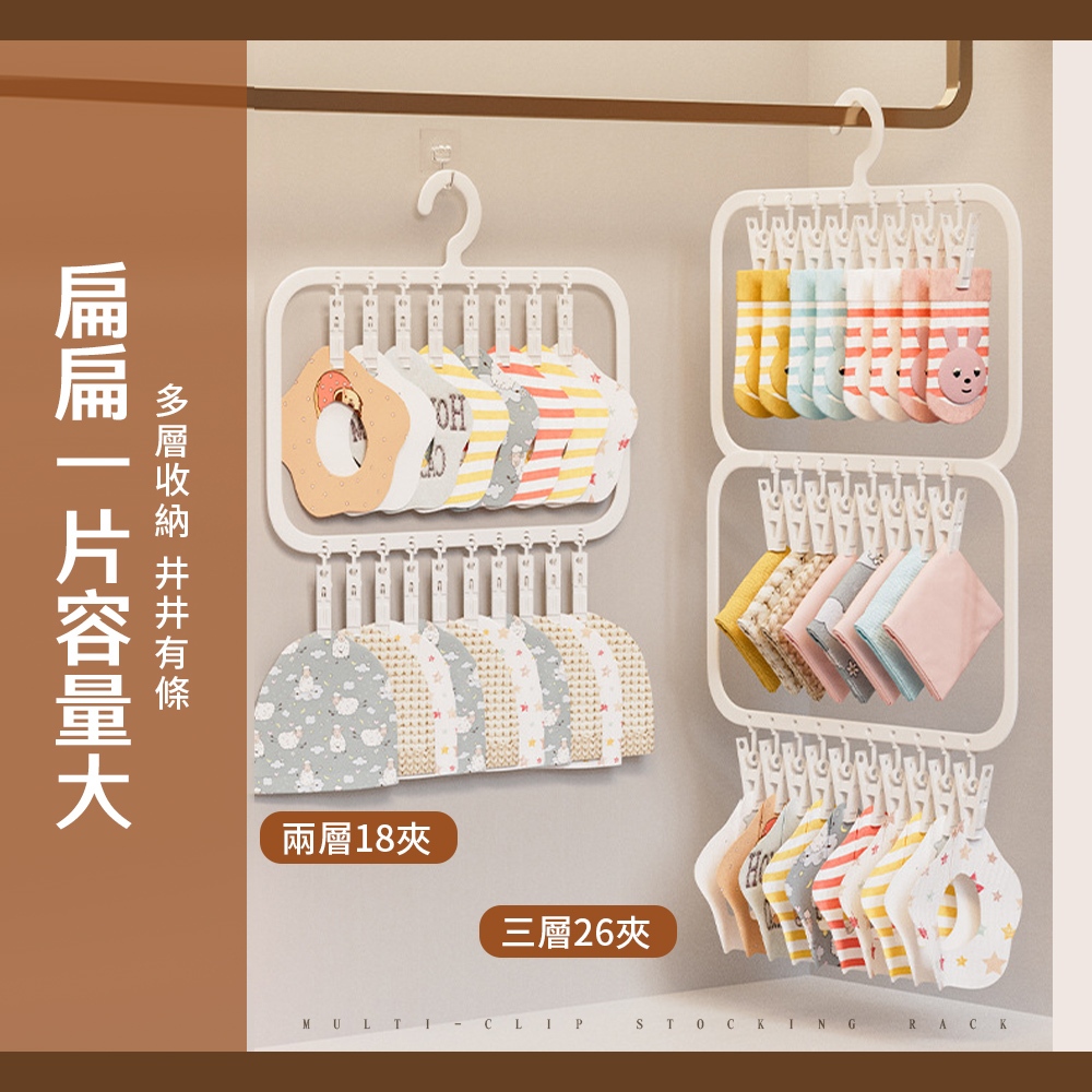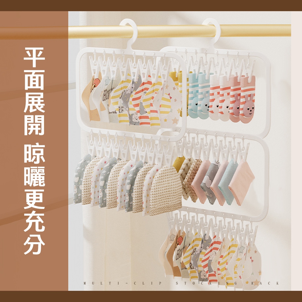 【LAVIDA嚴選】曬襪夾 多夾曬襪架 襪子夾 曬衣夾 曬衣架 帽子收納 掛衣架 吊衣架 晾衣架 寶寶衣架 曬襪架01.18夾|02.26夾Hangers & PegsLAVIDA 育兒好好玩!