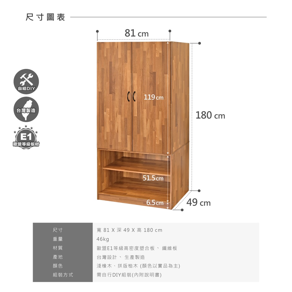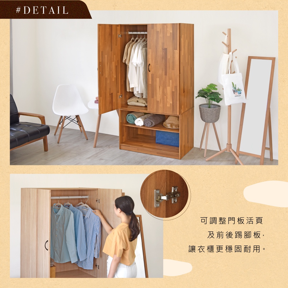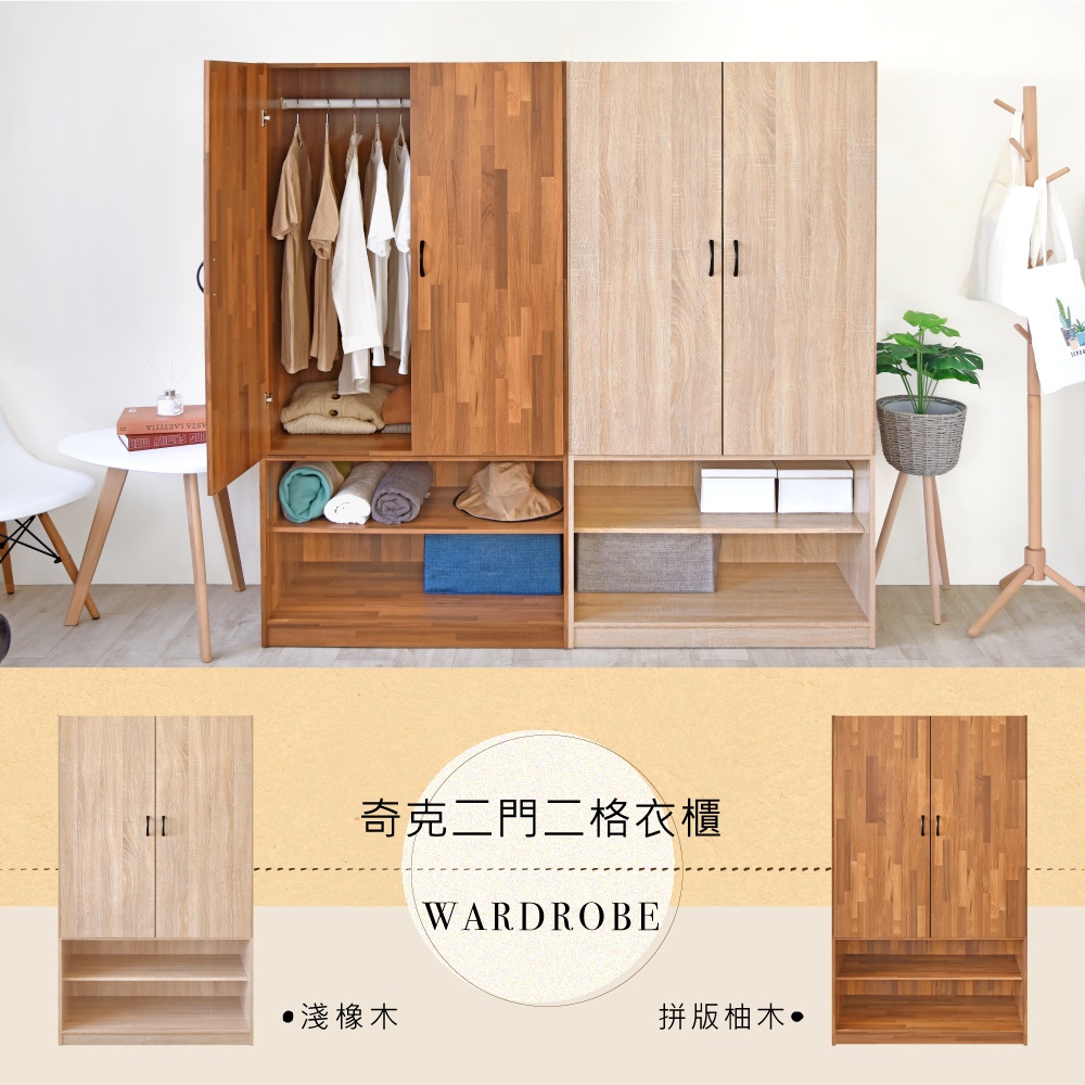 HOPMA美背奇克二門二格衣櫃 台灣製造 衣櫥 收納櫃 衣物收納櫃A-NW885淺橡(漂流)木|拼版柚木WardrobesHOPMA 合馬家具