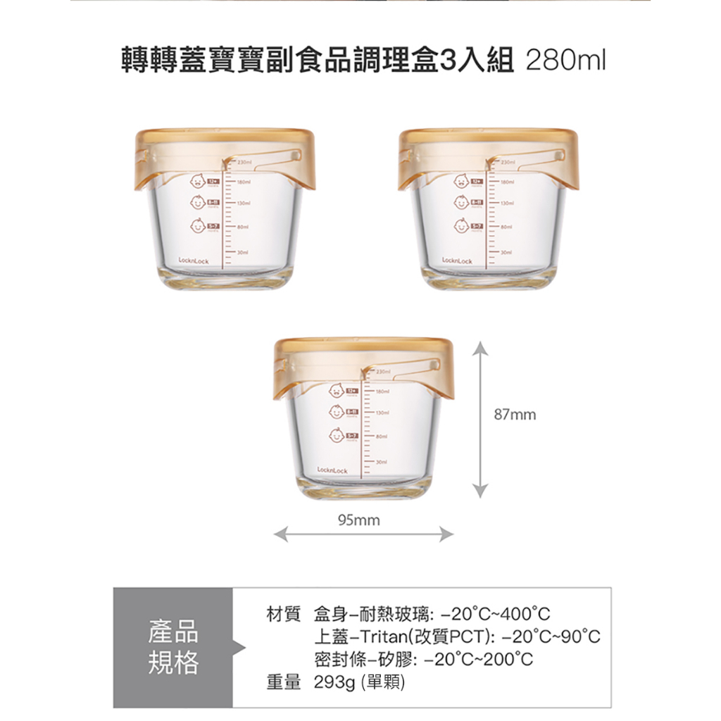 【樂扣樂扣】寶寶副食品轉轉蓋耐熱密封玻璃保鮮盒3入組/280ML【樂扣樂扣】寶寶副食品轉轉蓋耐熱密封玻璃保鮮盒3入組/280MLFood StorageLocknLock樂扣樂扣旗艦店