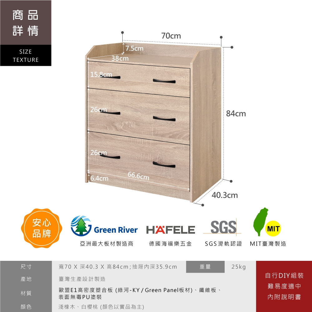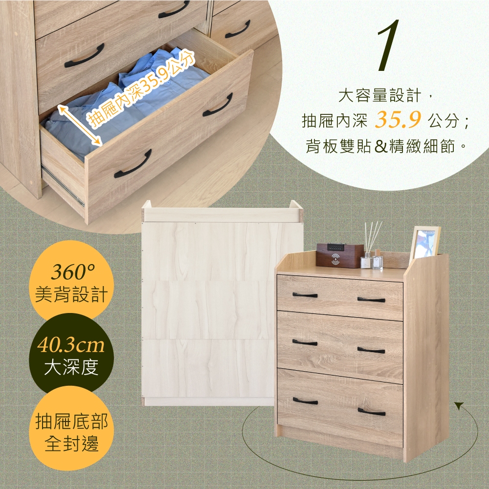 HOPMA 荷比北歐風三抽斗櫃 台灣製造 收納床頭櫃 置物抽屜櫃 邊櫃B-H300白櫻桃|淺橡(漂流)木Cupboards & CabinetsHOPMA 合馬家具