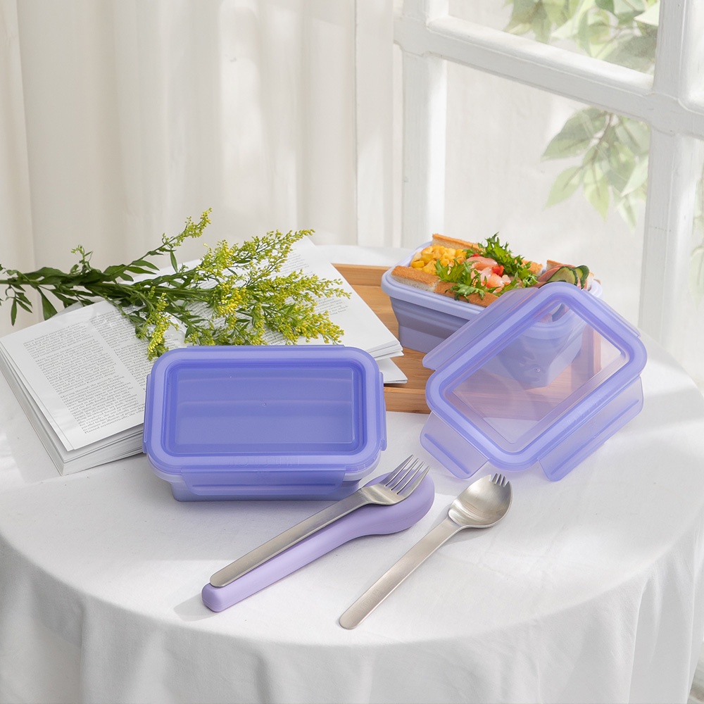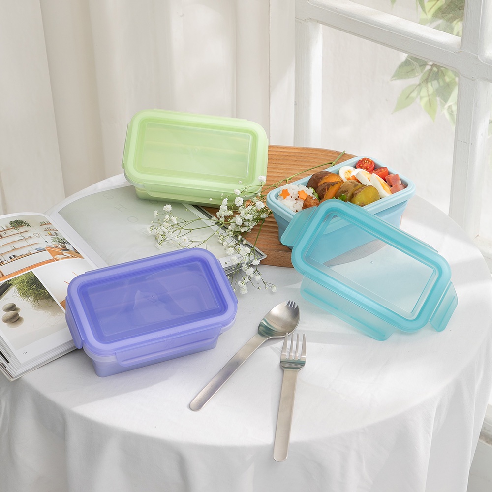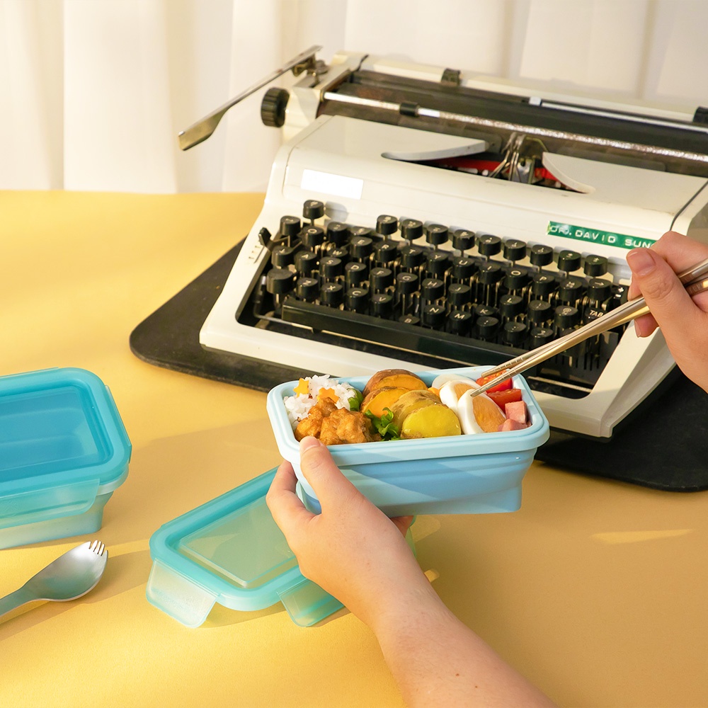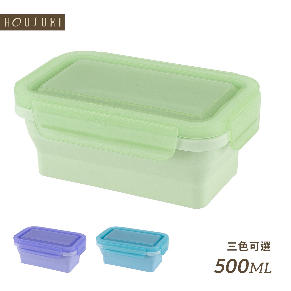 【HOUSUXI官方旗艦】長方形矽膠折折盒500ml(共三色)蔚藍|青紫|碧綠Food StorageHOUSUXI 舒希官方旗艦店