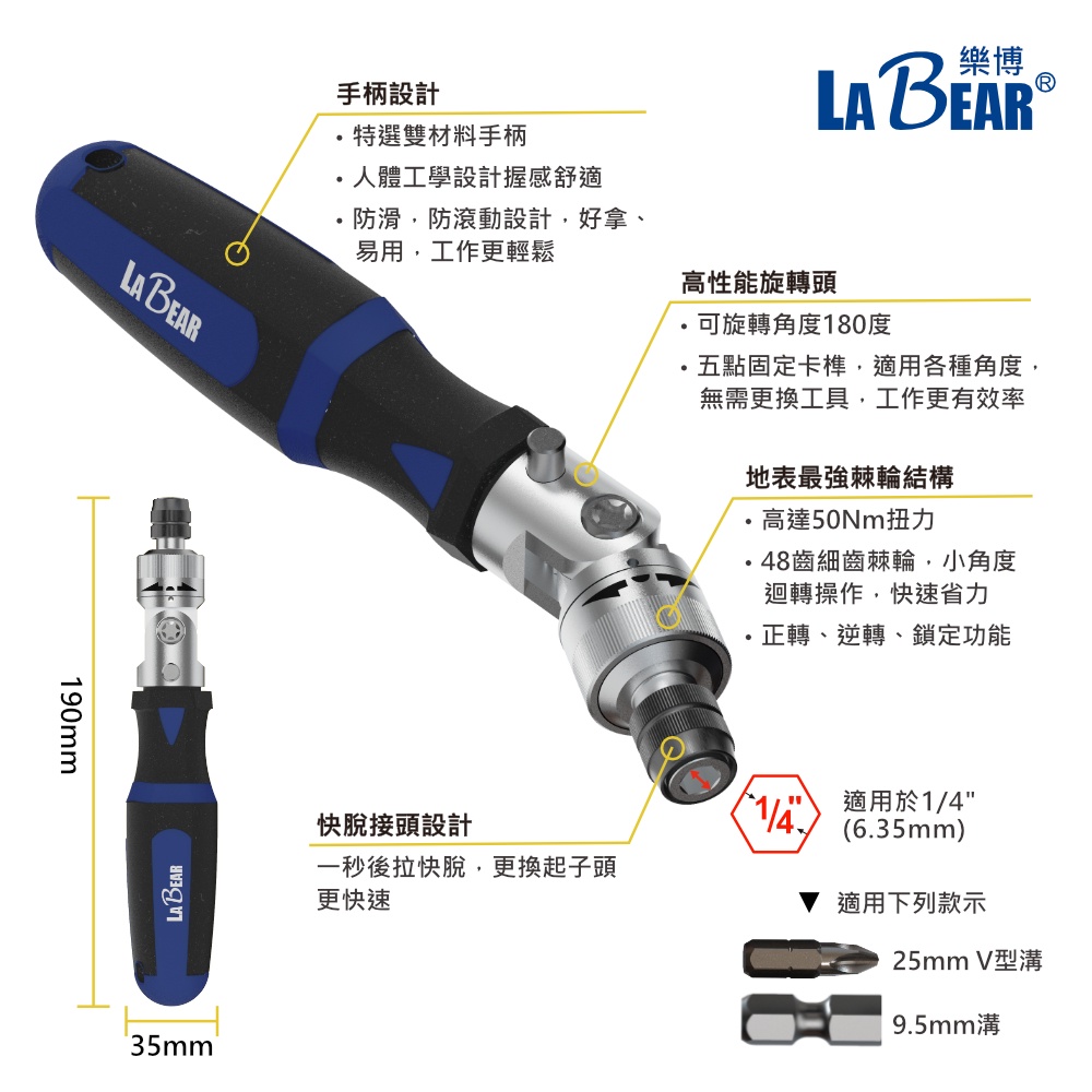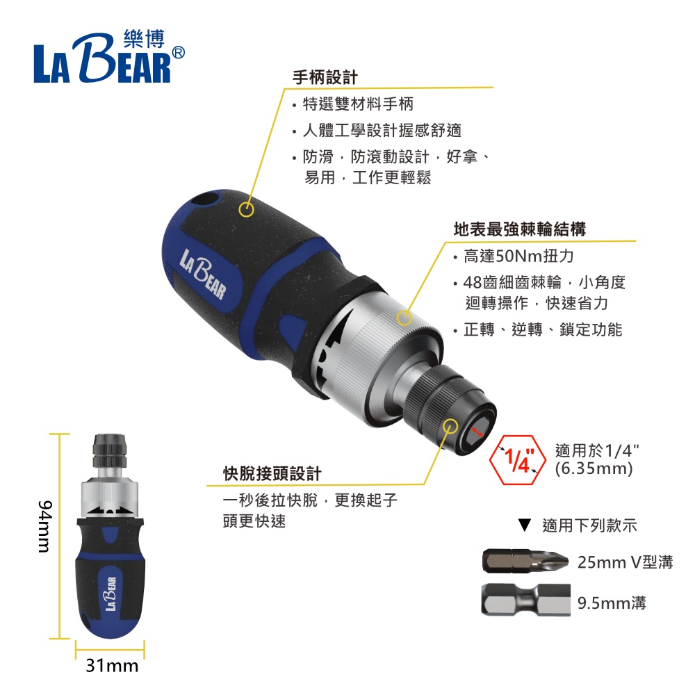 【LaBear】棘輪 螺絲起子 快脫 省力 雙向棘輪起子 多角度擺頭 / 迷你直向 棘輪 台灣製迷你直向款|多角度擺頭款|直向+擺頭 兩支組ToolsLaBear 樂博工具