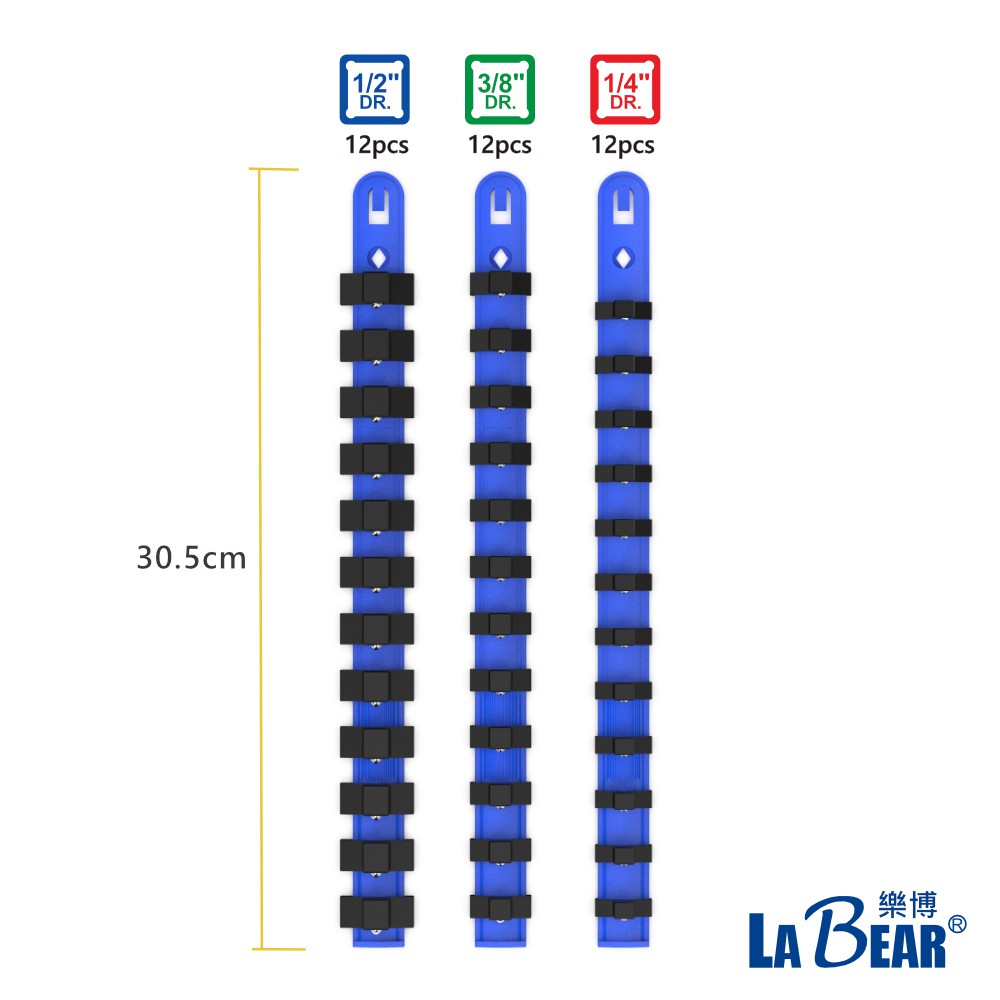 【LaBear】套筒收納條12pcs 2分/3分/4分 套筒架 套筒收納導軌插座 套筒夾 套筒卡座架子 套筒插排 鋼珠型2分 (1/4″)套筒收納條|3分 (3/8″)套筒收納條|4分 (1/2″)套筒收納條ToolsLaBear 樂博工具